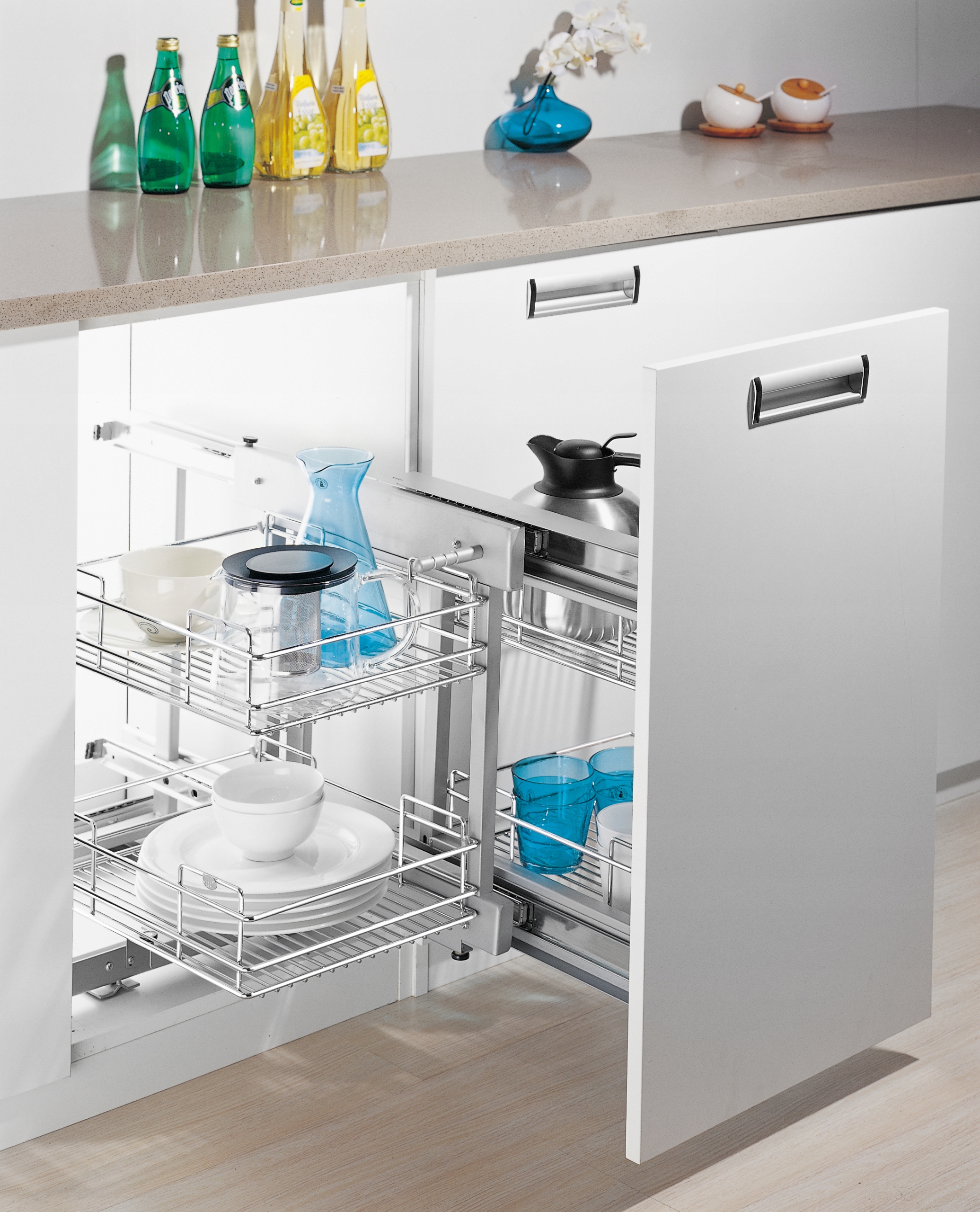 Cargo Magic Corner basket є ідеальним рішенням для полегшення використання простору в шафах з розмірами 800-900 мм.