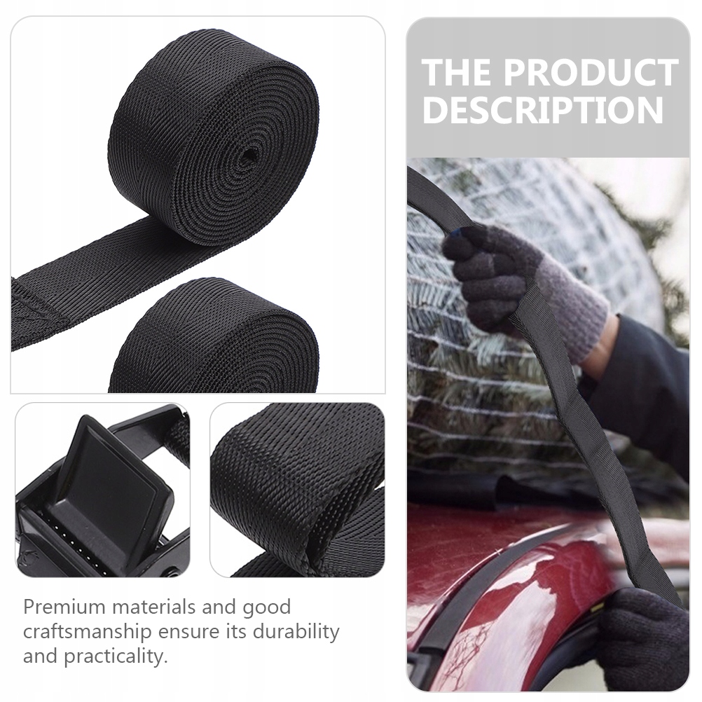Це ремінець із застібкою, виготовлений із хороших матеріалів і може використовуватися протягом тривалого часу. Він широко використовується для кріплення вантажу автомобіля, ременів кріплення вантажу, кріплення вантажу багажу, кріплення вантажу мотоцикла, кріплення вантажу велосипеда, кріплення вантажу посилки. Це практичний інструмент, який неможливо пропустити.