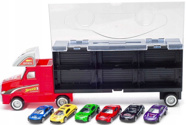 Прозорі сторони причепа відкриваються, що дозволяє поміщати невеликі транспортні засоби в спеціальні відсіки - ящики, щоб їх можна було транспортувати в будь-яке вибране місце.