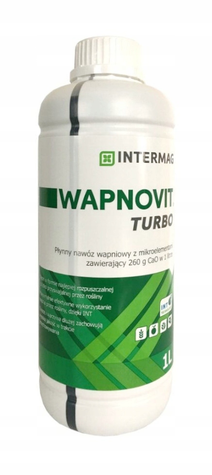 Вапновіт Турбо - це сучасне кальцієве добриво, збагачене магнієм і мікроелементами. Добриво використовується за технологією INT, що робить препарат надзвичайно ефективним - кальцій дуже швидко засвоюється рослиною і переміщується до всіх органів, забезпечуючи їх правильний ріст і розвиток. Додаткові інгредієнти позитивно впливають на кількість і якість врожаю. Рекомендується для позакореневого підживлення, а також для використання при зрошенні (фертигації) посівів з підвищеною потребою в кальції. Позакореневе підживлення кальцієм є необхідним, особливо в садових культурах, через обмежений рух і транспорт іонів Са2+ в рослинах. Такий спосіб забезпечення рослин кальцієм запобігає виникненню таких фізіологічних захворювань, як суха верхівкова гниль у томатів, гірка плямистість у яблук, «опік» у хрестоцвітих.