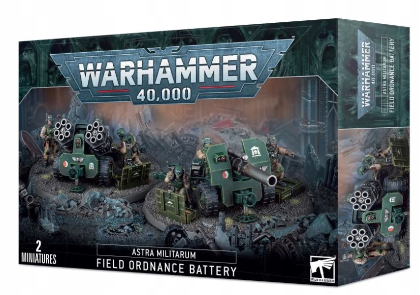 Команди зброї мають одну з найбільших портативних зброї, яку має Astra Militarum. Від польового бомби, який запускає важкі кулі над будівлями та військами, до бар'єру головних пускових установ Malleus, або вогненну енергію, випущену Heavy Lascannony, ця польова зброя є потужною перевагою кожного загального. Артилерія - мобільні артилерійські платформи, які разом утворюють акумулятор польової зброї. Кожен артилерійський синдром складається з артилерії та двох спостерігачів або зарядки, що подає важкий пістолет, який ви вибрали - ракетний пристрій Malleus з широкою насиченістю, польовим пістолетом непрямого діапазону або важким Ласканноном, що потрапляє в транспортний засіб. Ландер і зарядка також озброєні в лазгунах та фрагментарних гранати. Члени екіпажу можуть бути змішані з багатьма косметичними варіантами, включаючи дванадцять голов та різні види зброї, боєприпаси, пози та аксесуари. Ви також можете побудувати будь -який набір, як ніби він був прихований, без стрільця на сидінні. Набір також включає аркуш передачі транспортного засобу Astra Militarum з 475 передачами із зображенням номерів, сигналів та різного покриття. Мініатюра доставляється без фарбування і вимагає складання - ми рекомендуємо використовувати пластиковий клей Citadel та кольорові фарби цитаделі.
