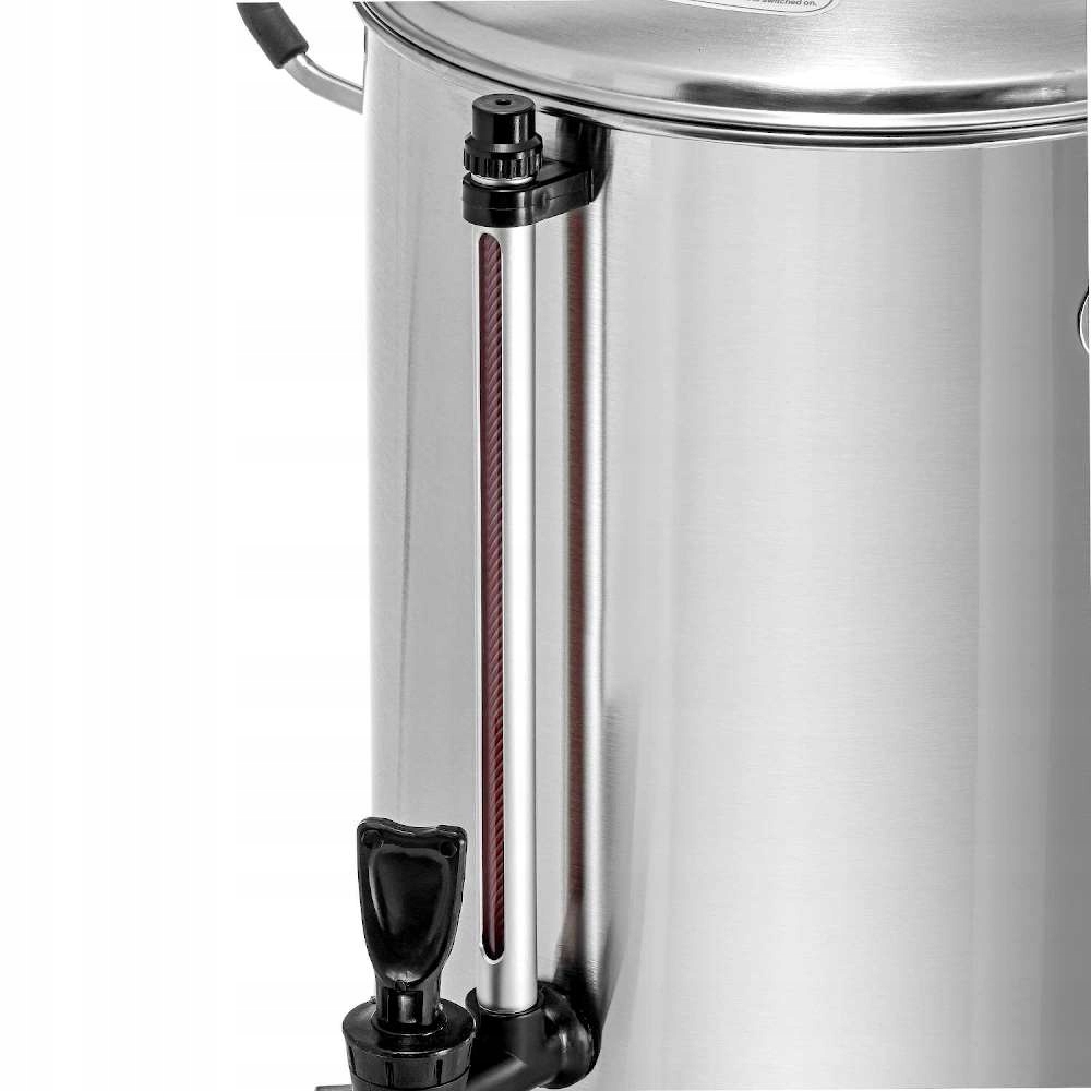Ручки з нержавіючої сталі, які не нагріваються, покриті пластиком. Прозорий індикатор рівня води.