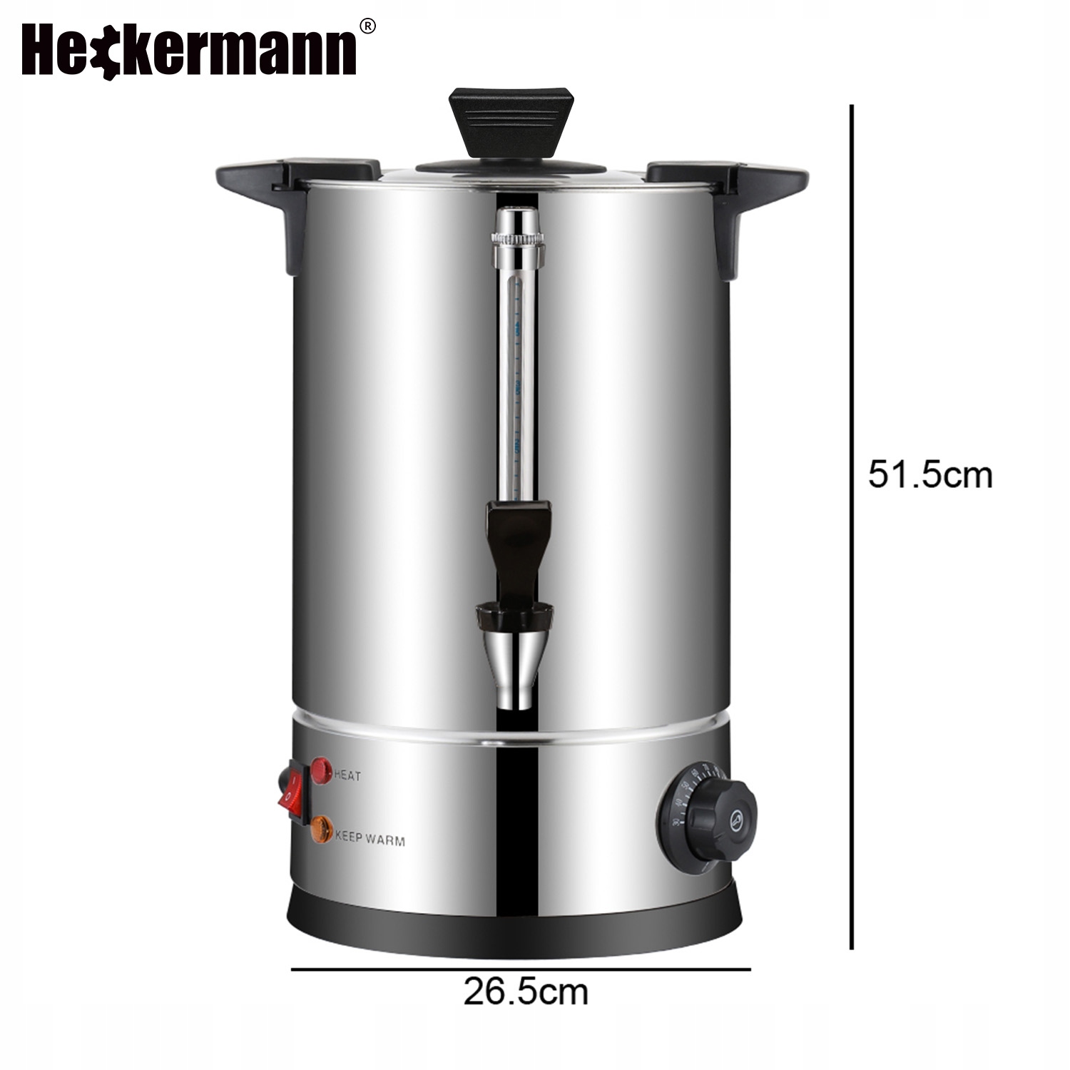 Не кожен чай і не кожна кава потребують окропу. Ось чому плита Heckermann оснащена плавним регулюванням температури, видимим на чіткій ручці (шкала від приблизно 30°C до 110°C).