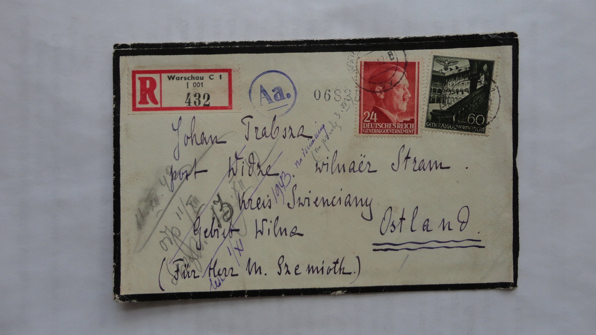 ВАРШАВА GG РЕКОМЕНДОВАНИЙ ЛИСТ ДИВ БІЛЯ ВІЛЬНЮСА ЦЕНЗУРА 1942 р.