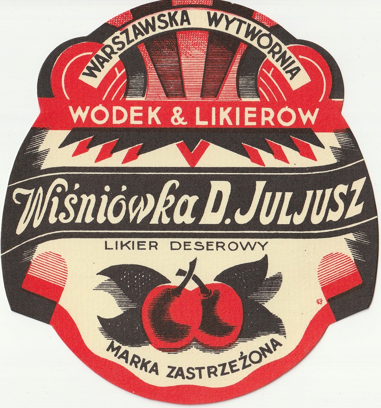 ВАРШАВСЬКА ГОРІЛКОВО-ЛІКЕРНА ФАБРИКА WIŚNIÓWKA D.JULIUSZ LIEGE LABEL