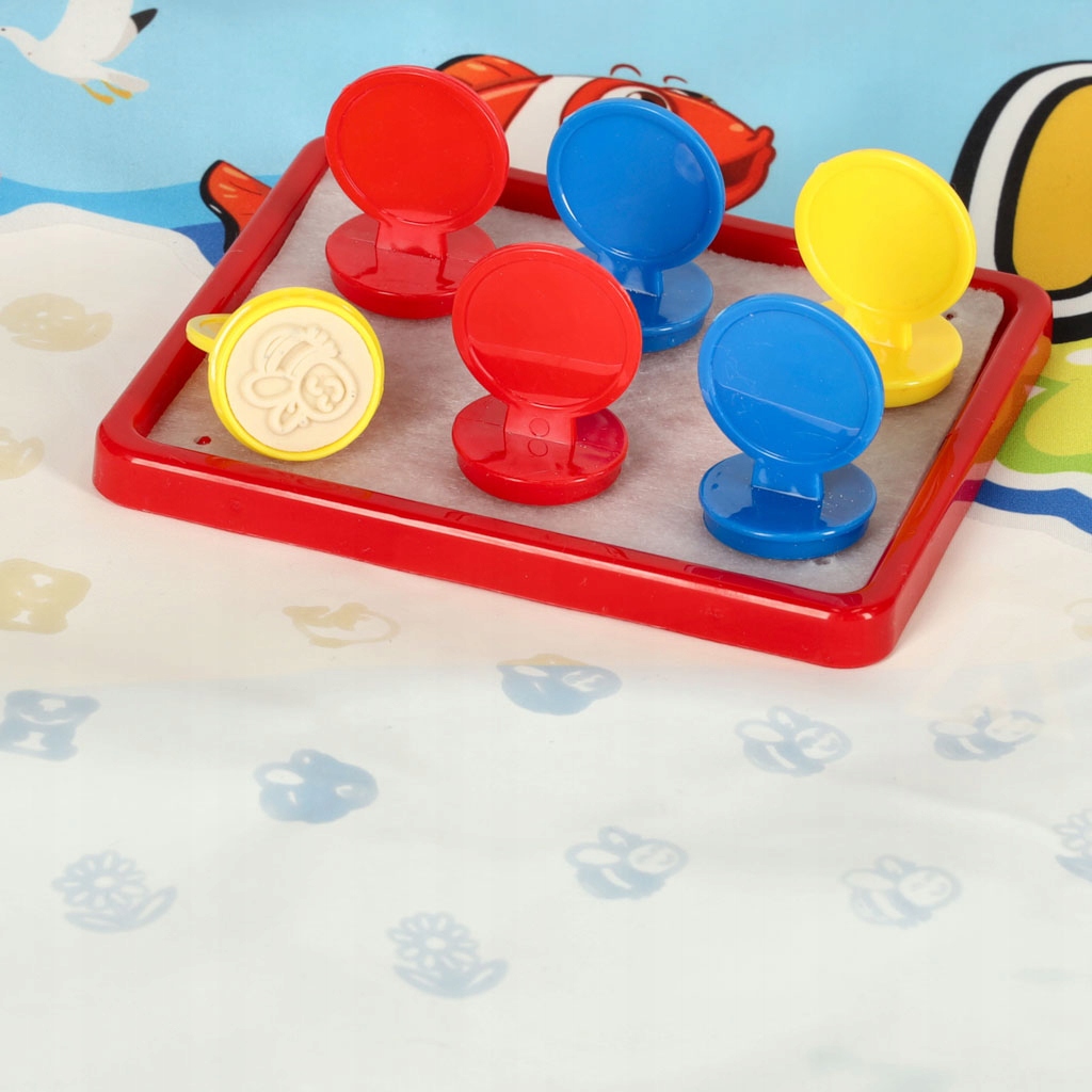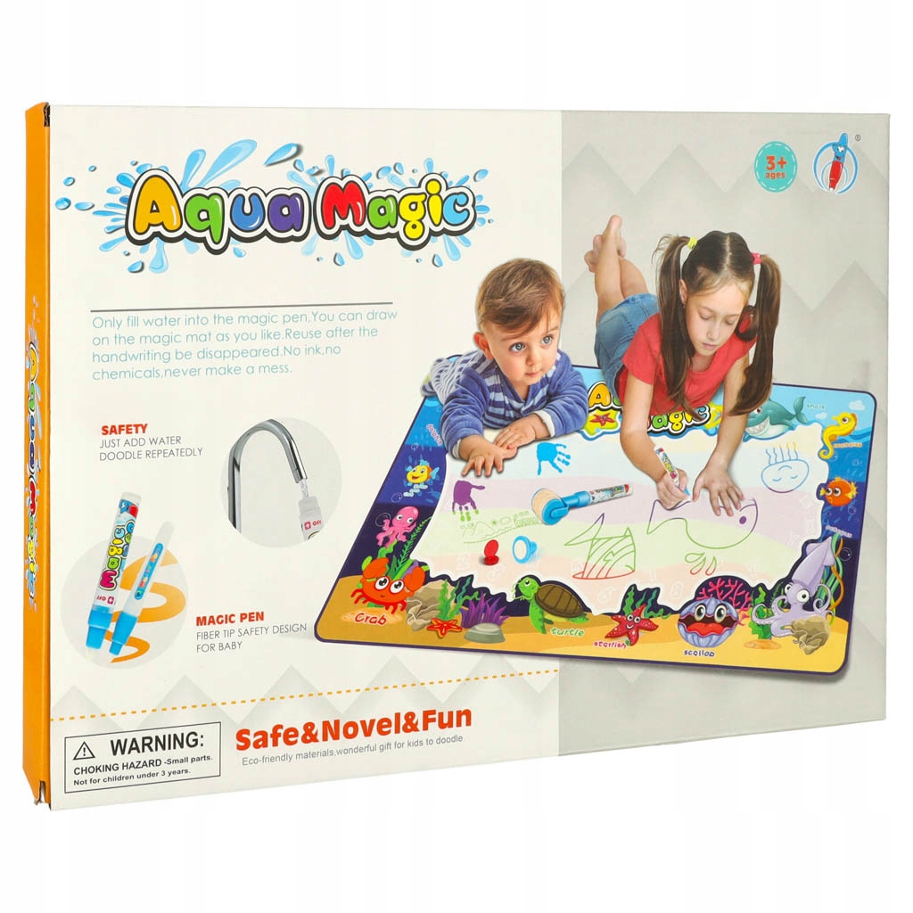 - Різнокольоровий водний килимок з аксесуарами. Стимулює уяву та креативність. Килимок дозволить вашій дитині стати справжнім художником. При змочуванні водою килимок відкриває барвистий малюнок. У набір входить: килимок, 7 штампів, 2 фломастери, пензлик, 4 шаблони. Вимова килимки: 100х80 см
