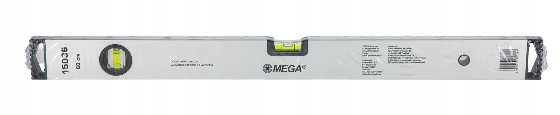 Професійний рівень MEGA 15036, довжина 600 мм і точність 1 мм / 1 м. Має два флакони (горизонтальний і вертикальний) і двосторонню шкалу. Алюмінієвий коробчатий корпус забезпечує довговічність. Ідеально підходить для будівельних робіт, складання великих меблів і укладання великоформатної плитки. Це гарантує точність, універсальність і тривалий термін служби, необхідні в кожній майстерні та будівельному майданчику.