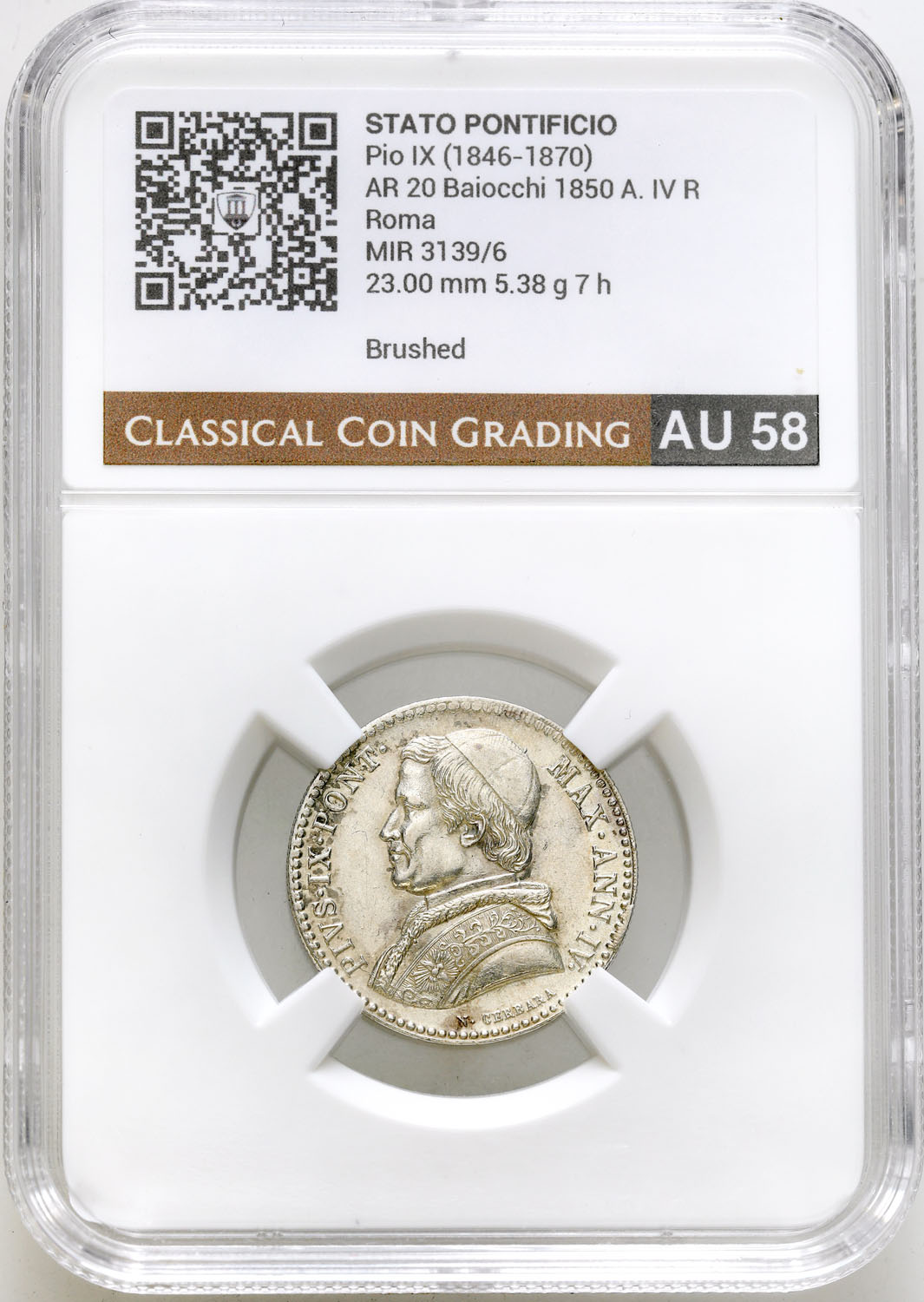 Ватикан. Пій IX (1846-1870). 20 baiocchi 1850 R, Рим CCG AU58
