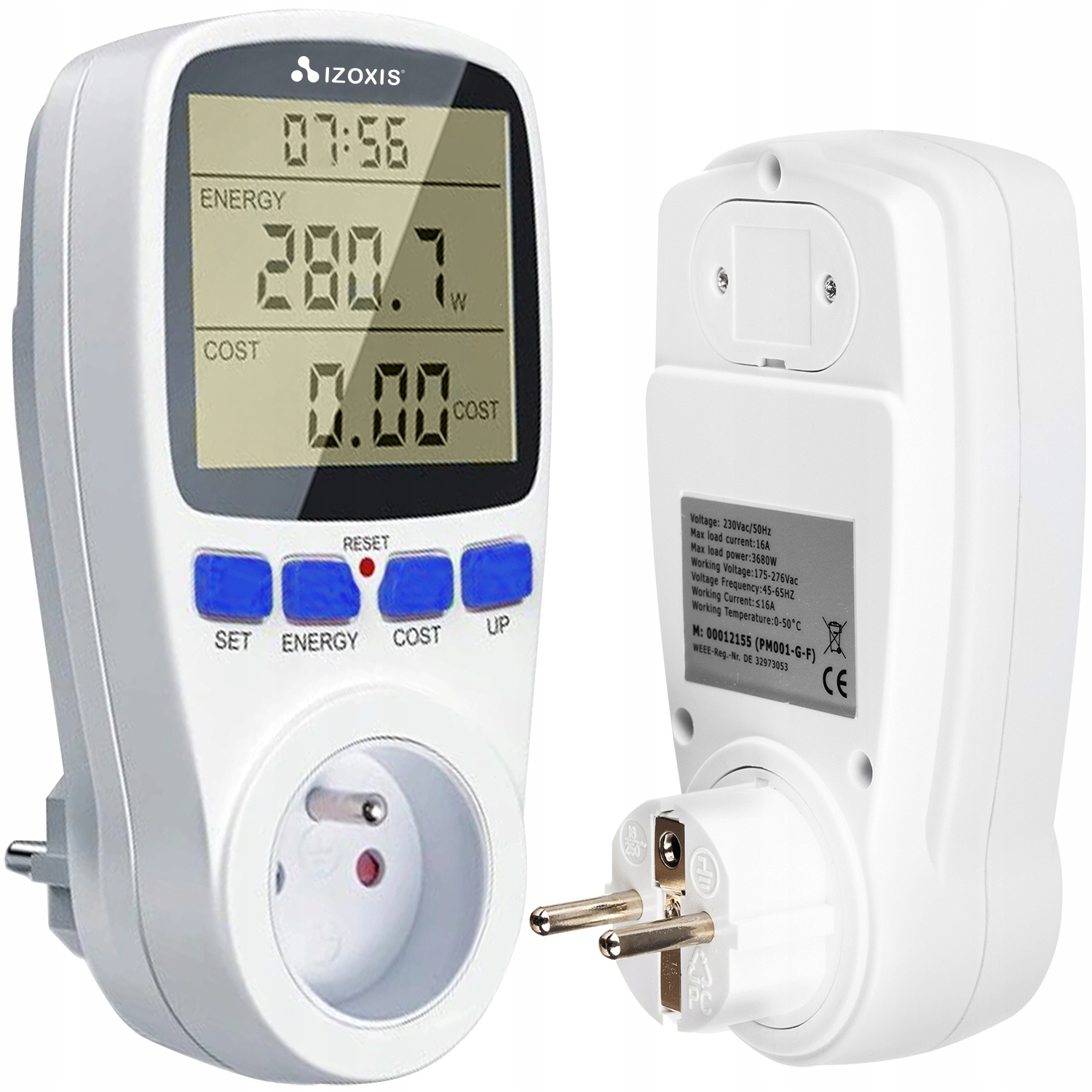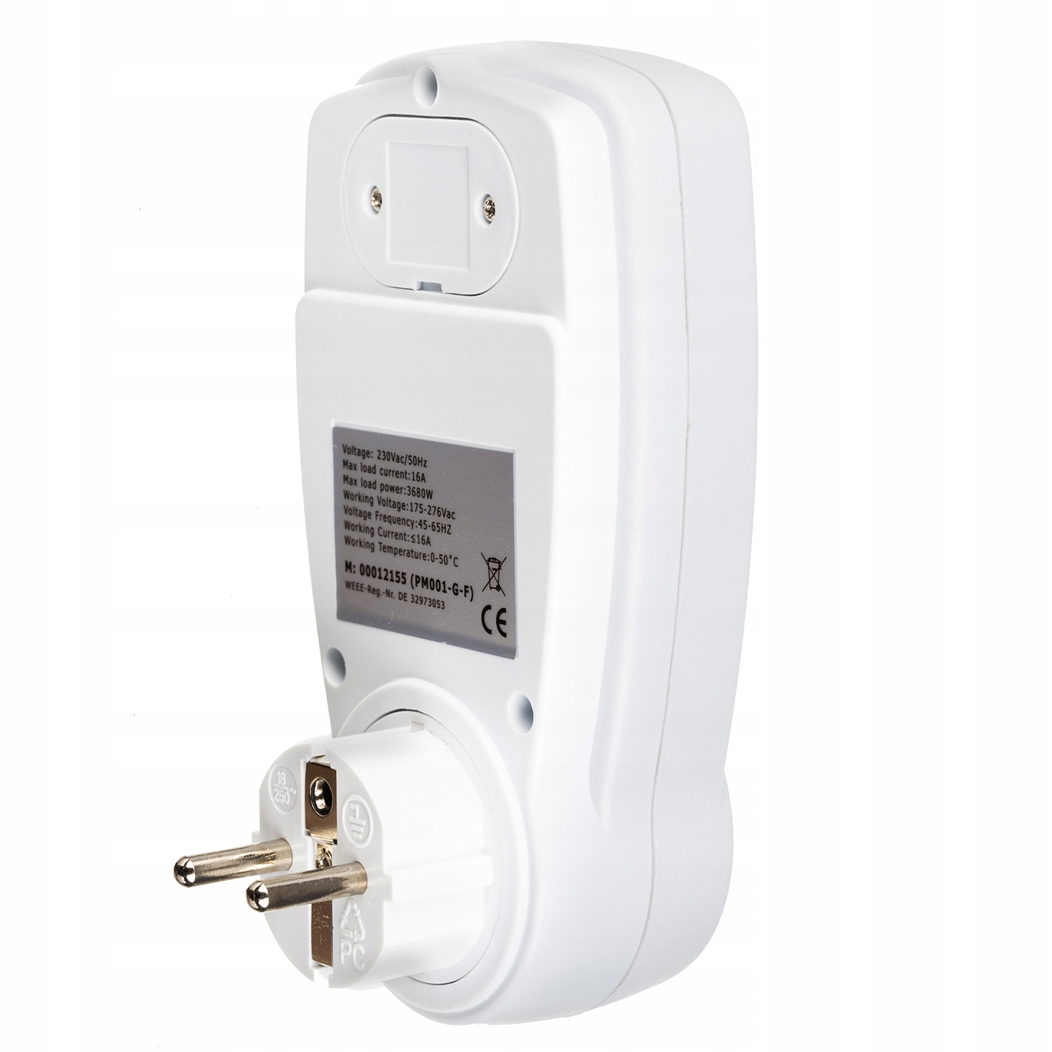 - СПЕЦИФІКАЦІЯ – напруга: 230 В / 50 Гц; робочий струм: макс. 16А; максимальна потужність навантаження: 3680 Вт; відображення часу: 0 секунд – 9999 днів; дисплей потужності: 0-9999 Вт; відображення напруги: 0-9999В; відображення частоти: 0-9999 Гц; розміри: 15 х 7,5 х 8 см; вага в упаковці: 0,24 кг; вага з упаковкою: 0,25 кг.
