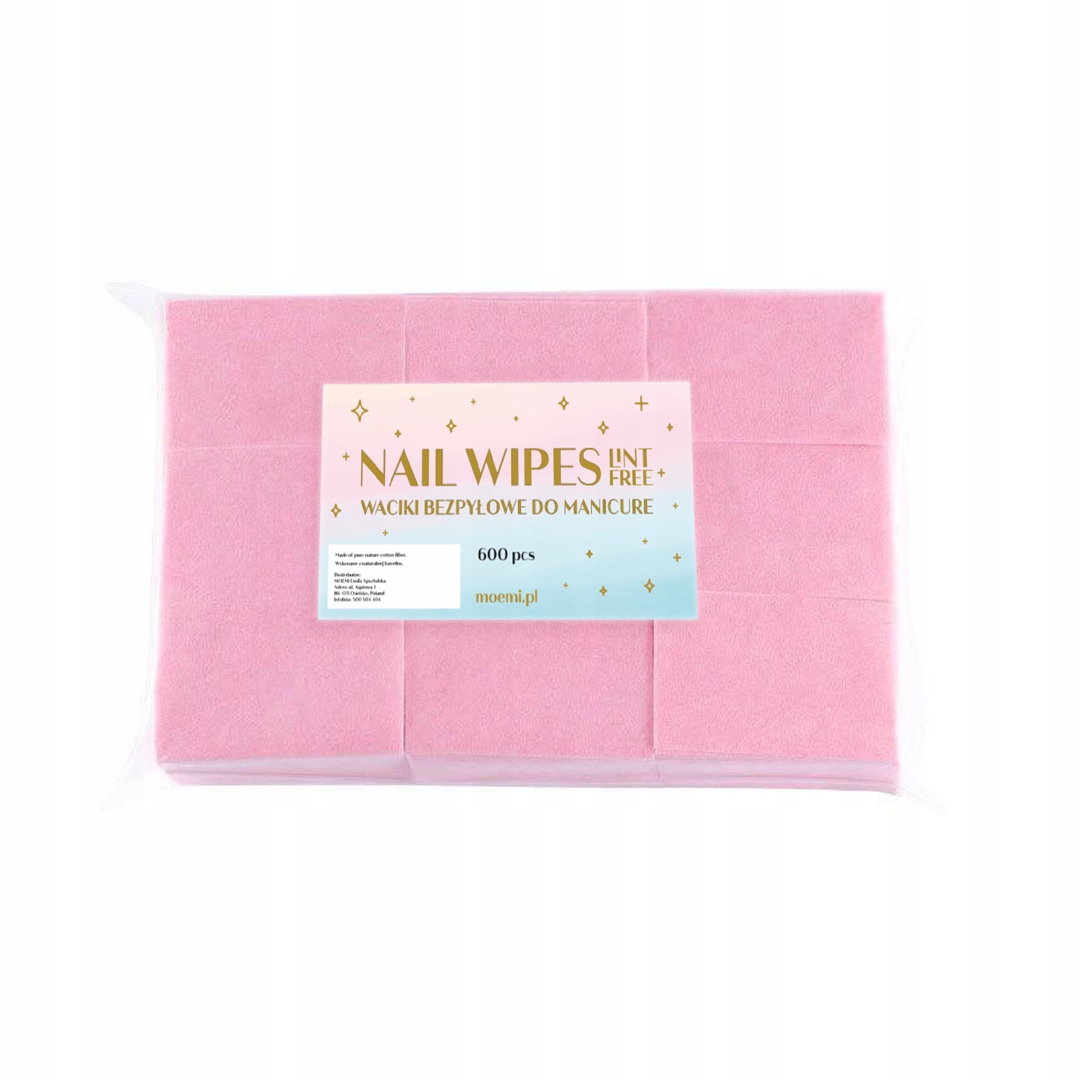 Waciki Bezpyłowe Do Manicure 600szt Różowe Moemi