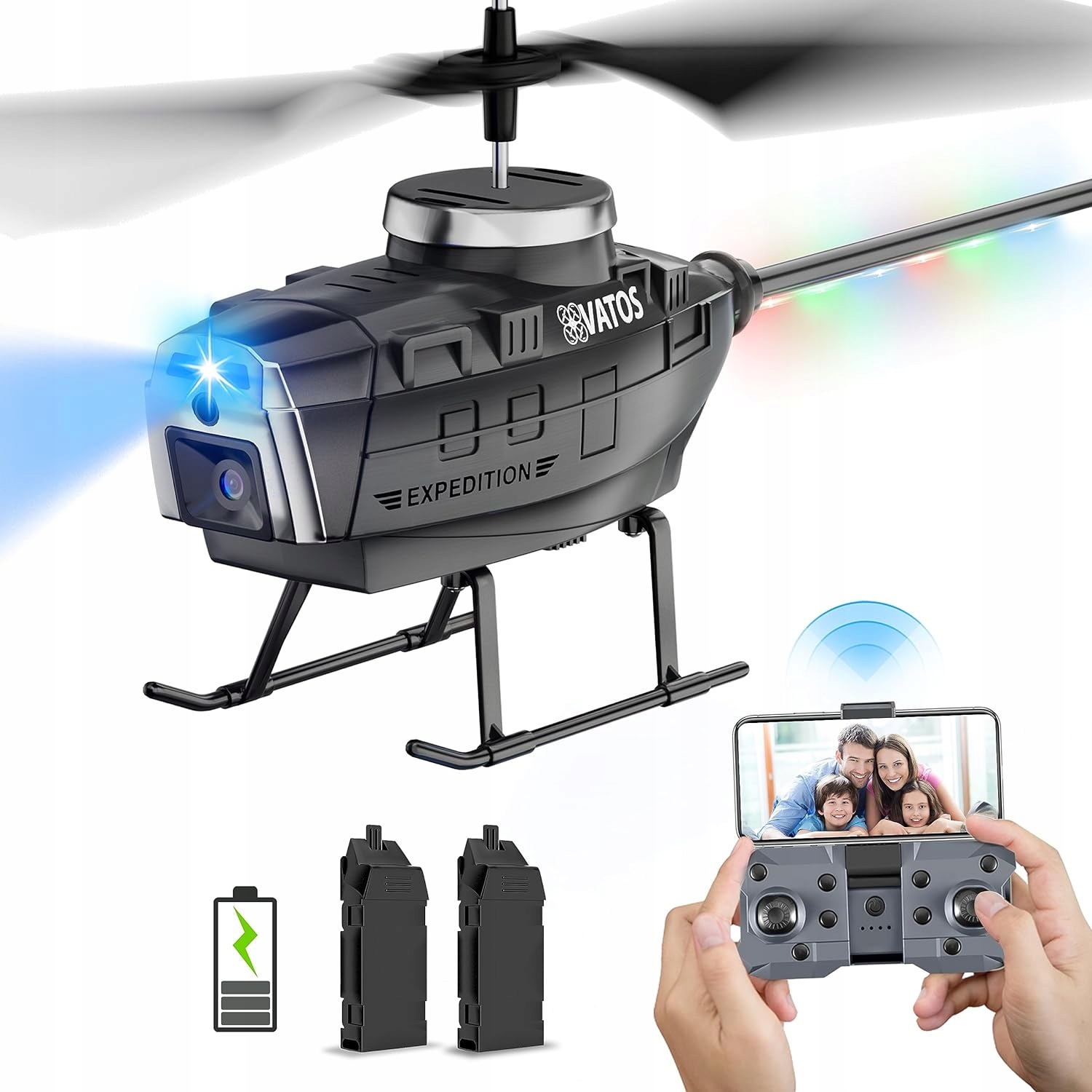 Вертоліт на дистанційному керування VATOS з камерою для уникнення перешкод, 2,4 ГГц 3,5-канальний вертоліт із світлодіодними ліхтарями, одна клавіша підтримки зльоту та посадки, гіроскоп, відео в прямому ефірі Wi-Fi FPV для початківців