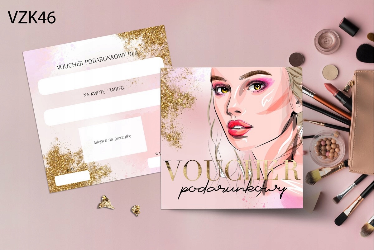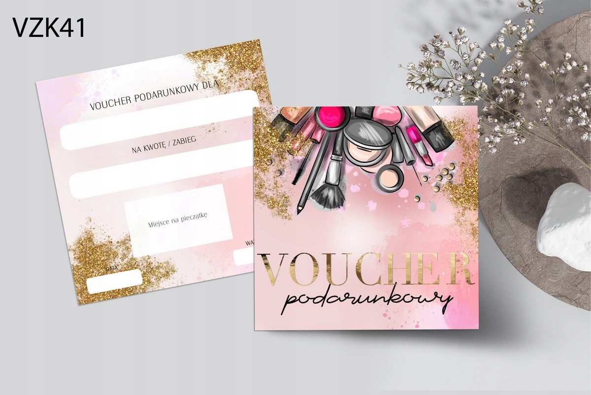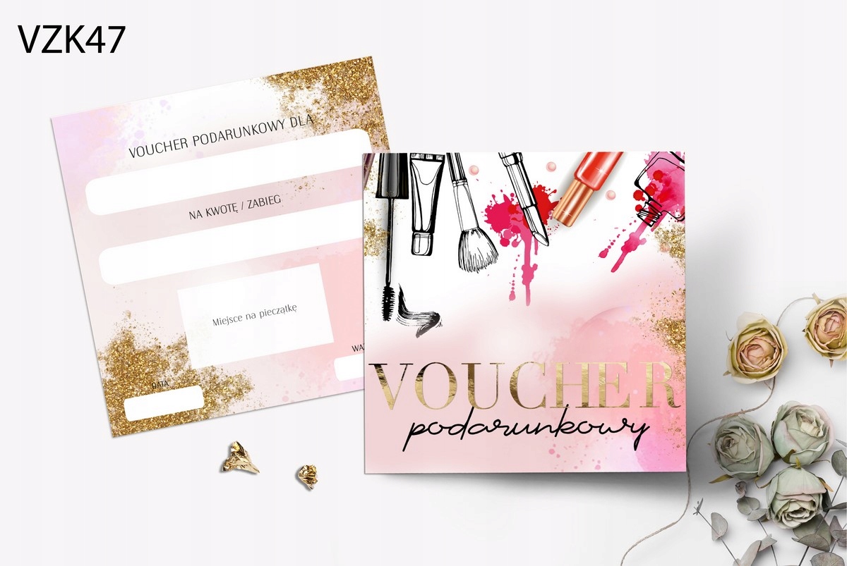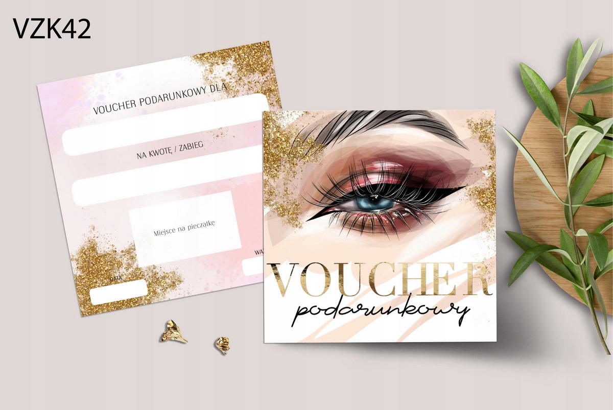 1) Ваучер із кольоровим принтом і золотим написом