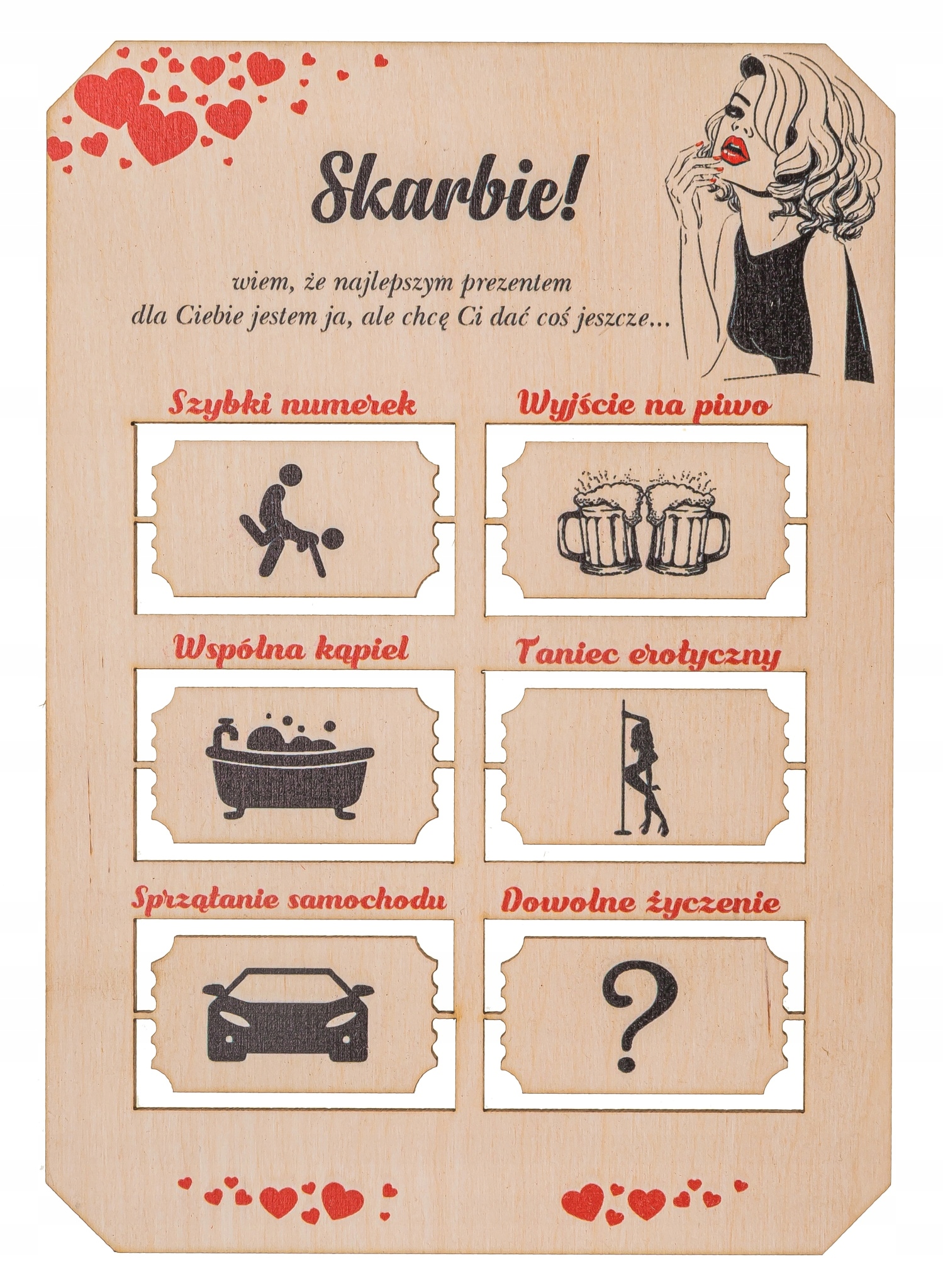 Ретельно виготовлений ваучер стане ідеальним подарунком для цієї нагоди - смішний табличка, яка викличе посмішку на обличчі вашої другої половини, з’явиться посмішка.