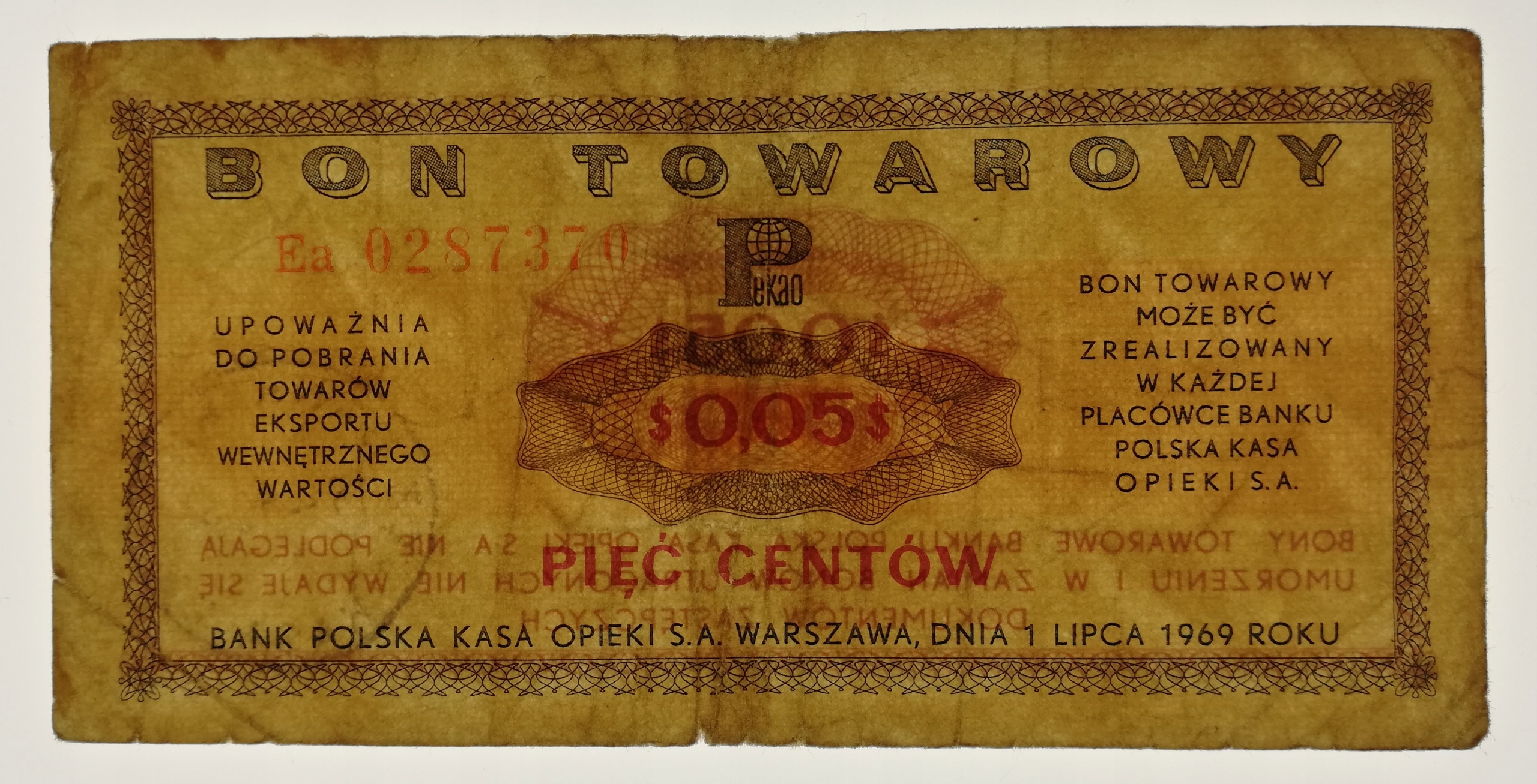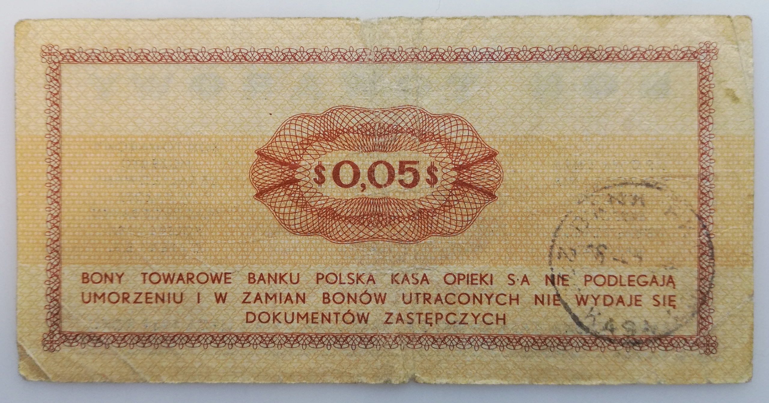 Ваучер Pewex на 5 центів 1969 року серії Ea