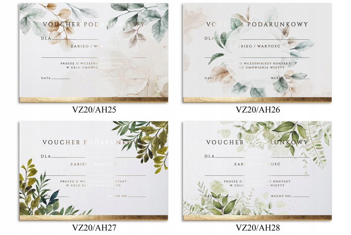 1) ваучер із кольоровим принтом і позолоченим текстом