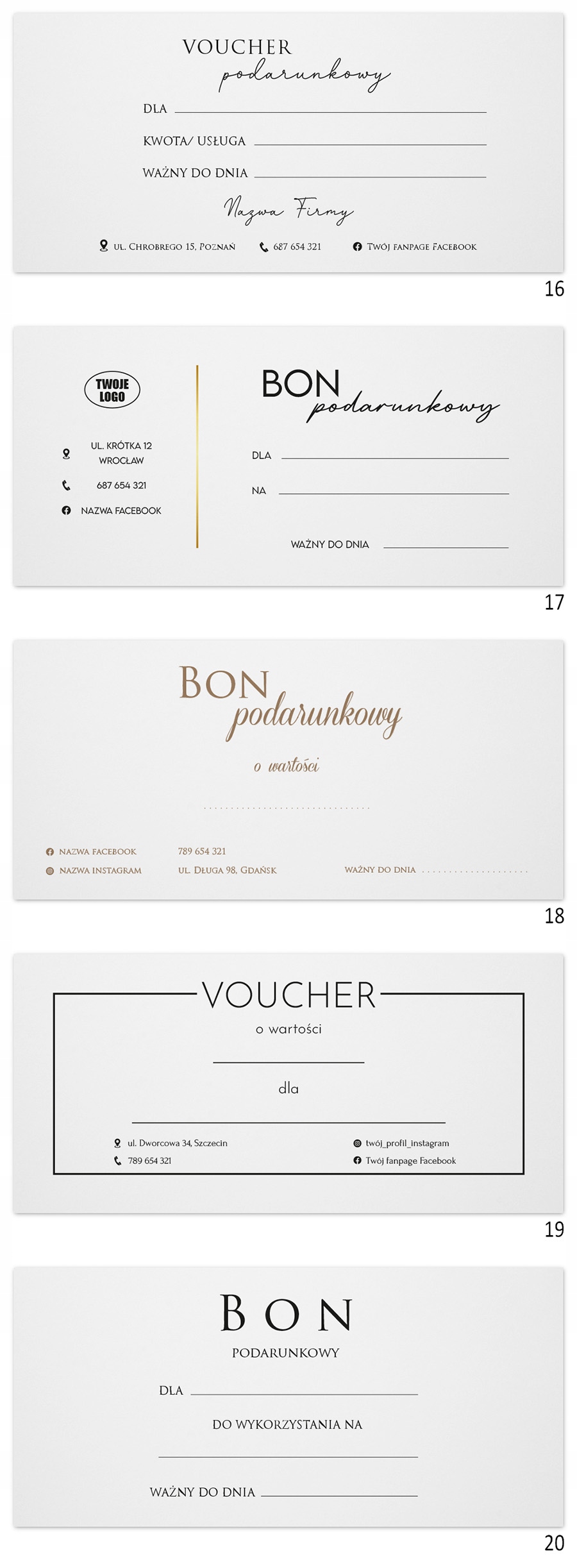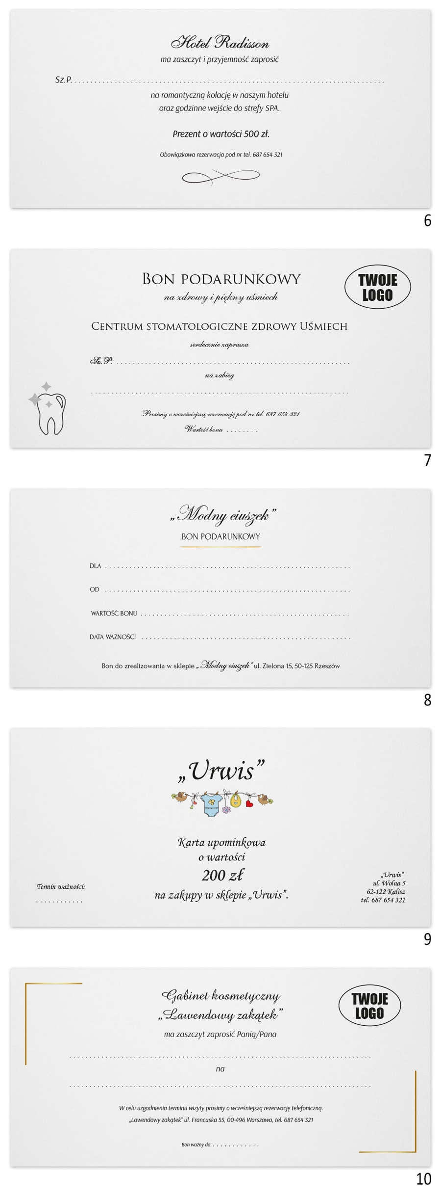 - Формат ваучера адаптовано до конвертів DL: 21 x 9,9 см