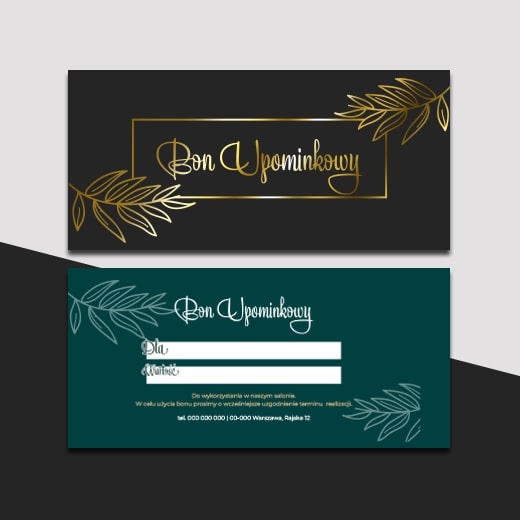 Ексклюзивні ваучери покриті з обох сторін оксамитовою фольгою soft touch з додатковими золоте покриття вибрана фольга.