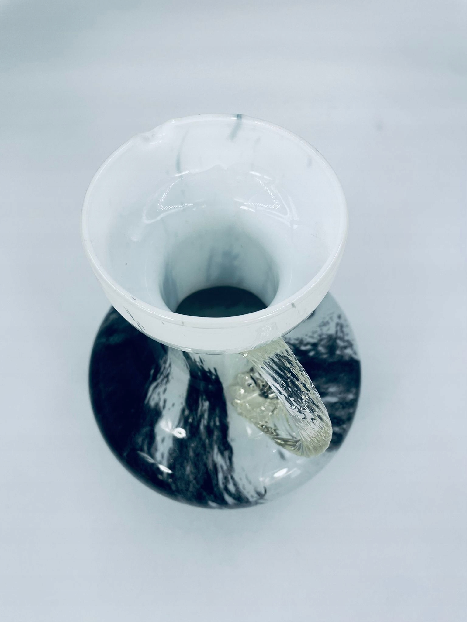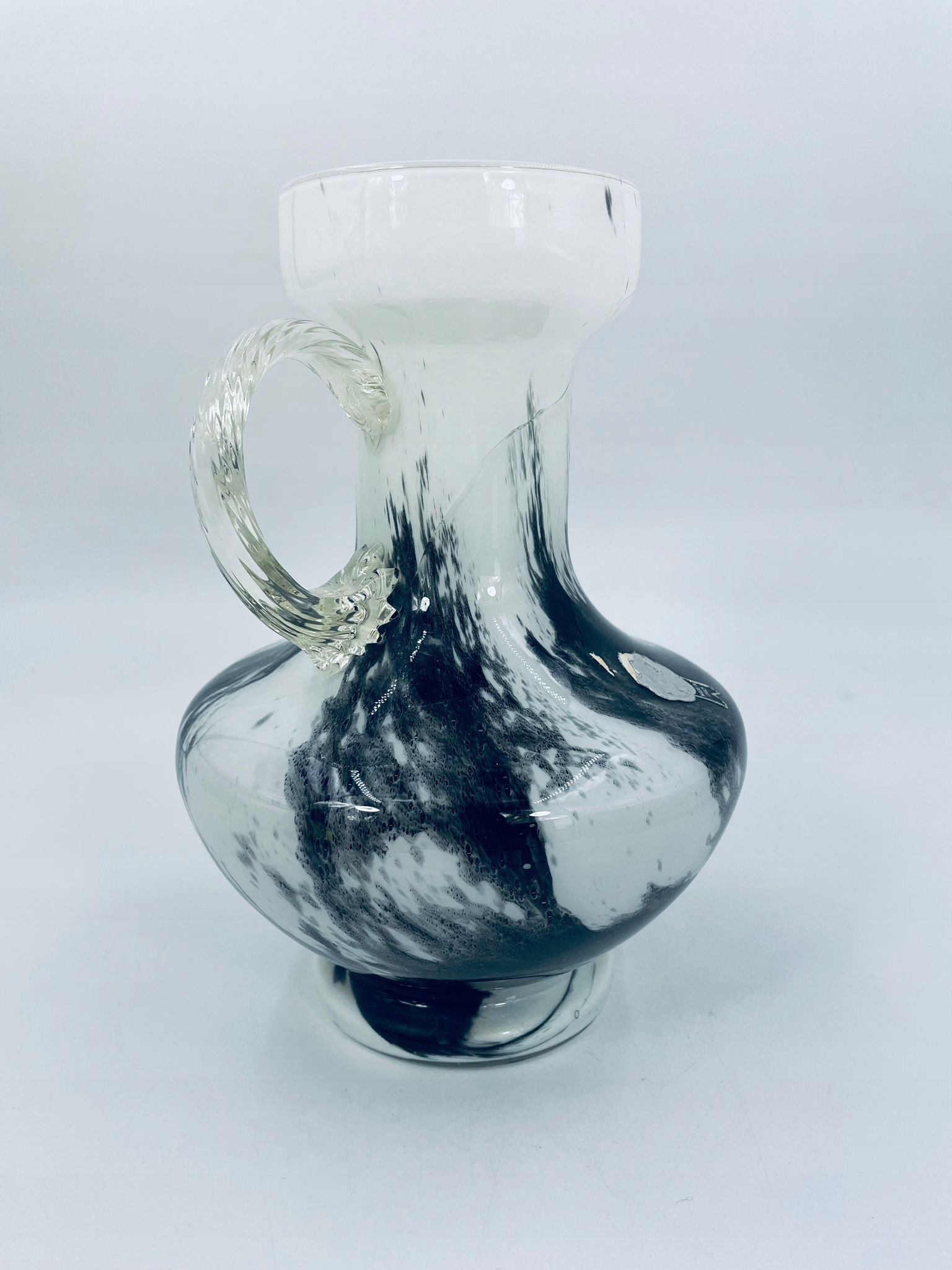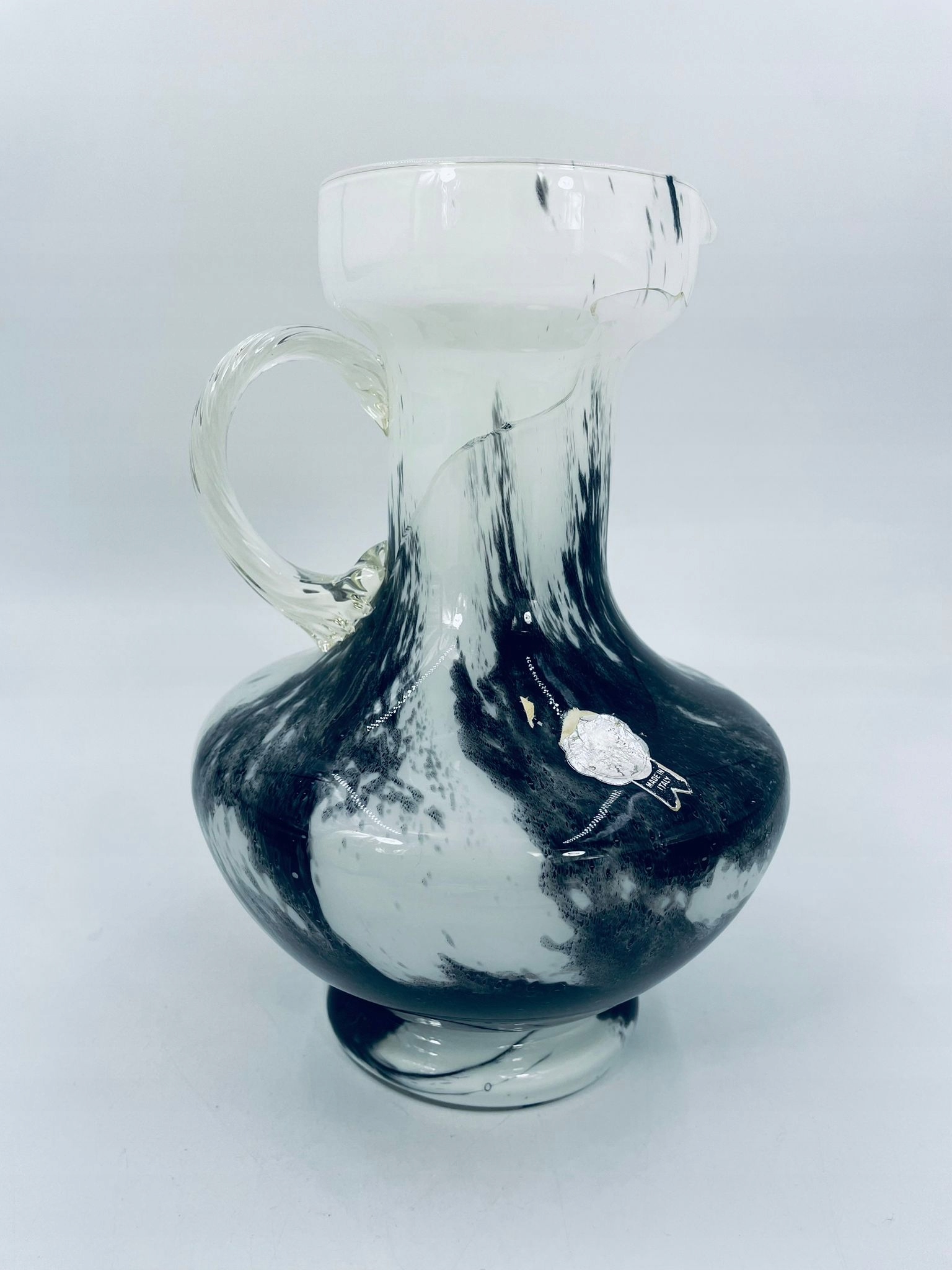 ваза, Опалін Флоренція Мурано глечика з Італії, з 70 -х. Красиві біло-чорні мармурові кольори. Ваза має високу шию, отвір для глечика та прозора ручка. Глечик розтріскується, склеюється, ідеально тримає.