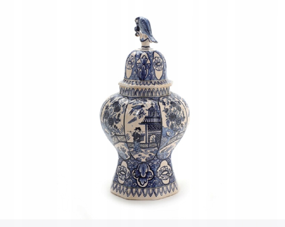 Ваза походить від камінного костюма, т.зв. kaststel (гол. kast — гардероб, stele — набір), що складається з непарної кількості посудин (від трьох до дев’яти) різної форми (наприклад, флейта, грушоподібна ваза, потіче або гарбуз) і однакового декору. У цих комплектах один тип посудин фігурував окремо, інші складали пари. Найчастіше вони імітували як форму далекосхідного посуду, так і синьо-біле оздоблення. Розміщені на полицях гардеробів або камінів, вони стали популярними у 18 столітті, де вони становили характерне доповнення до голландських інтер’єрів.
