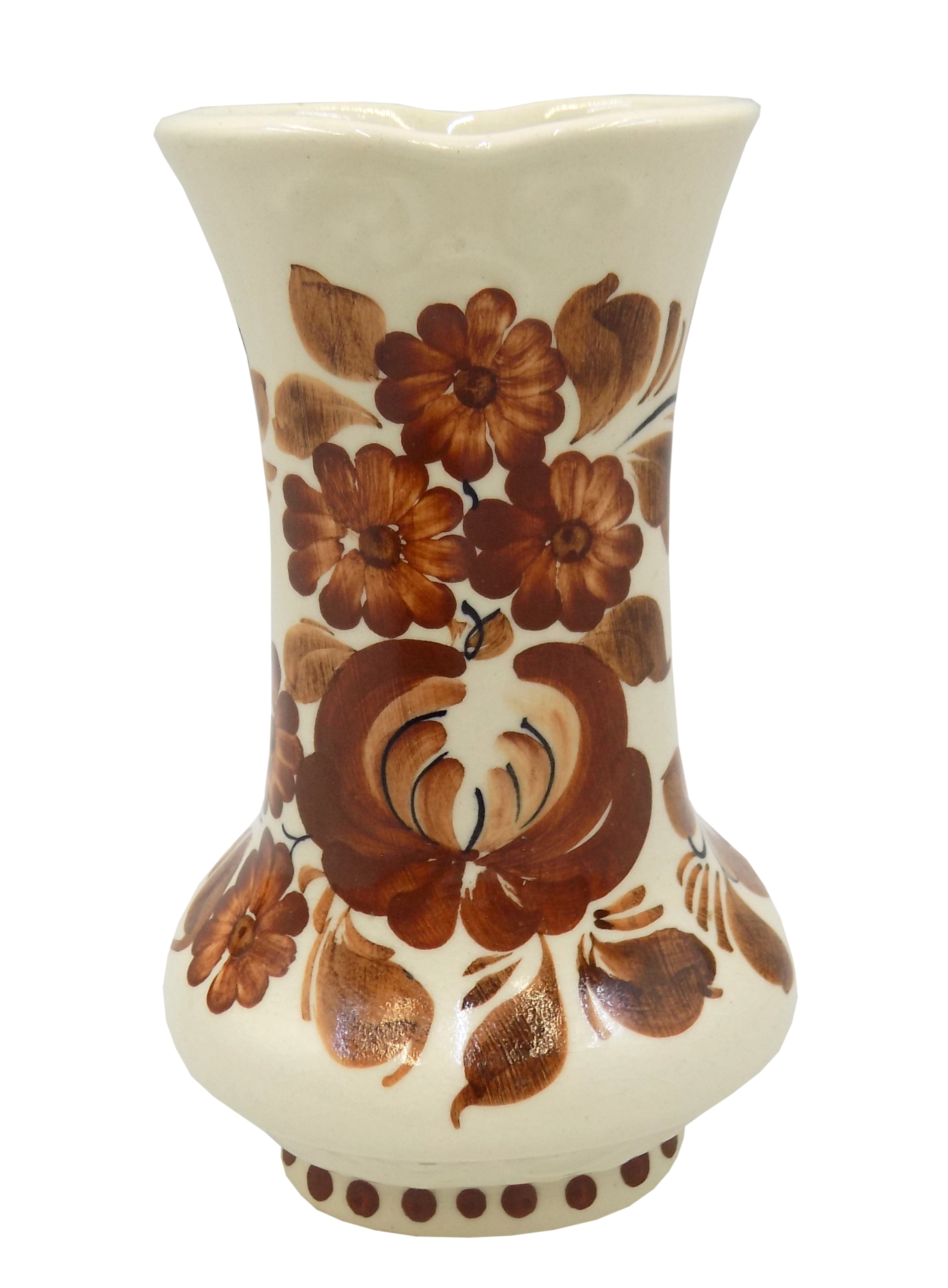 Ваза з фаянсу з Влоцлавека 1980-х років. Підписано. Ручний розпис Т. Wójcik. Викрійка 1713. Розміри; висота 16,5 х 10,5 х 9 см.