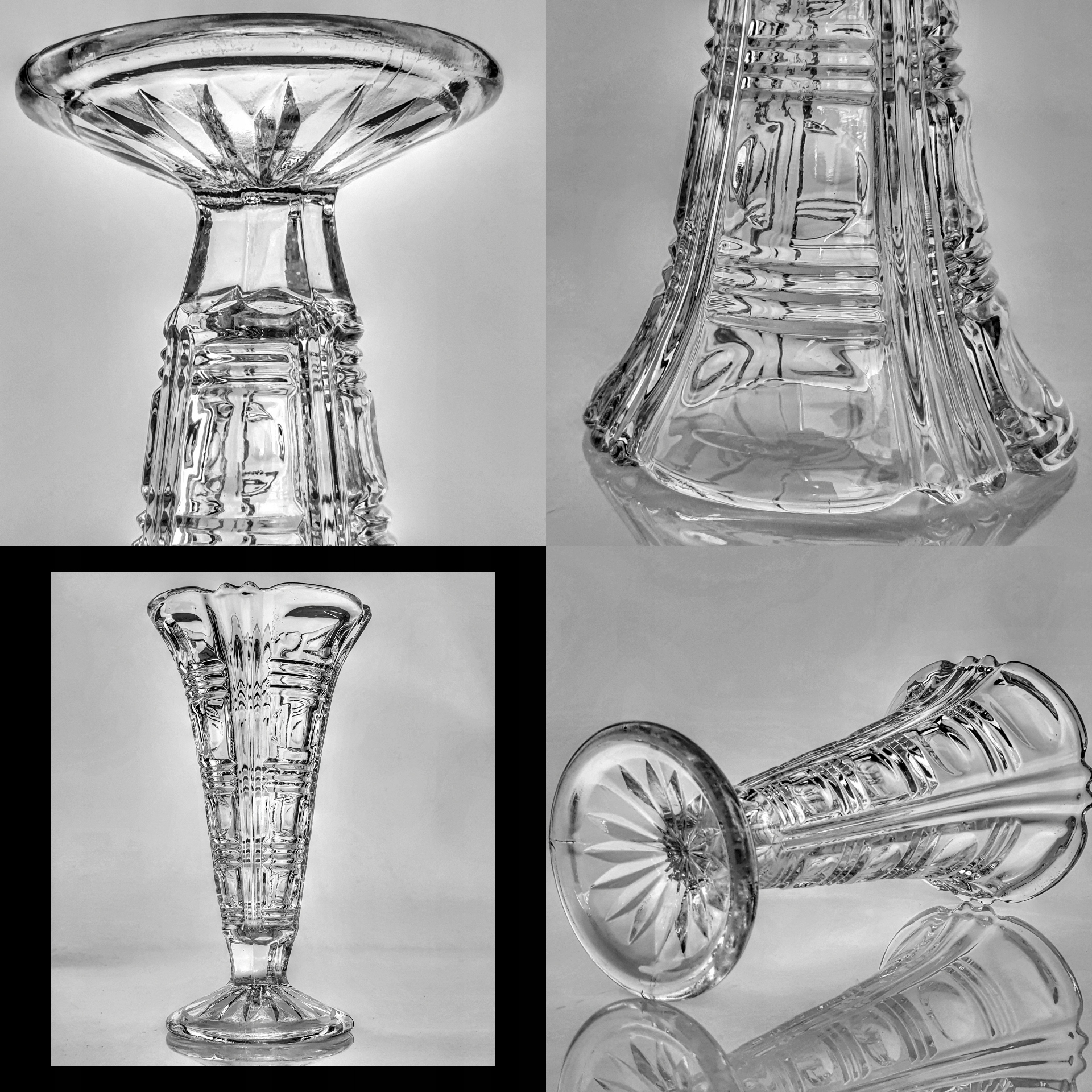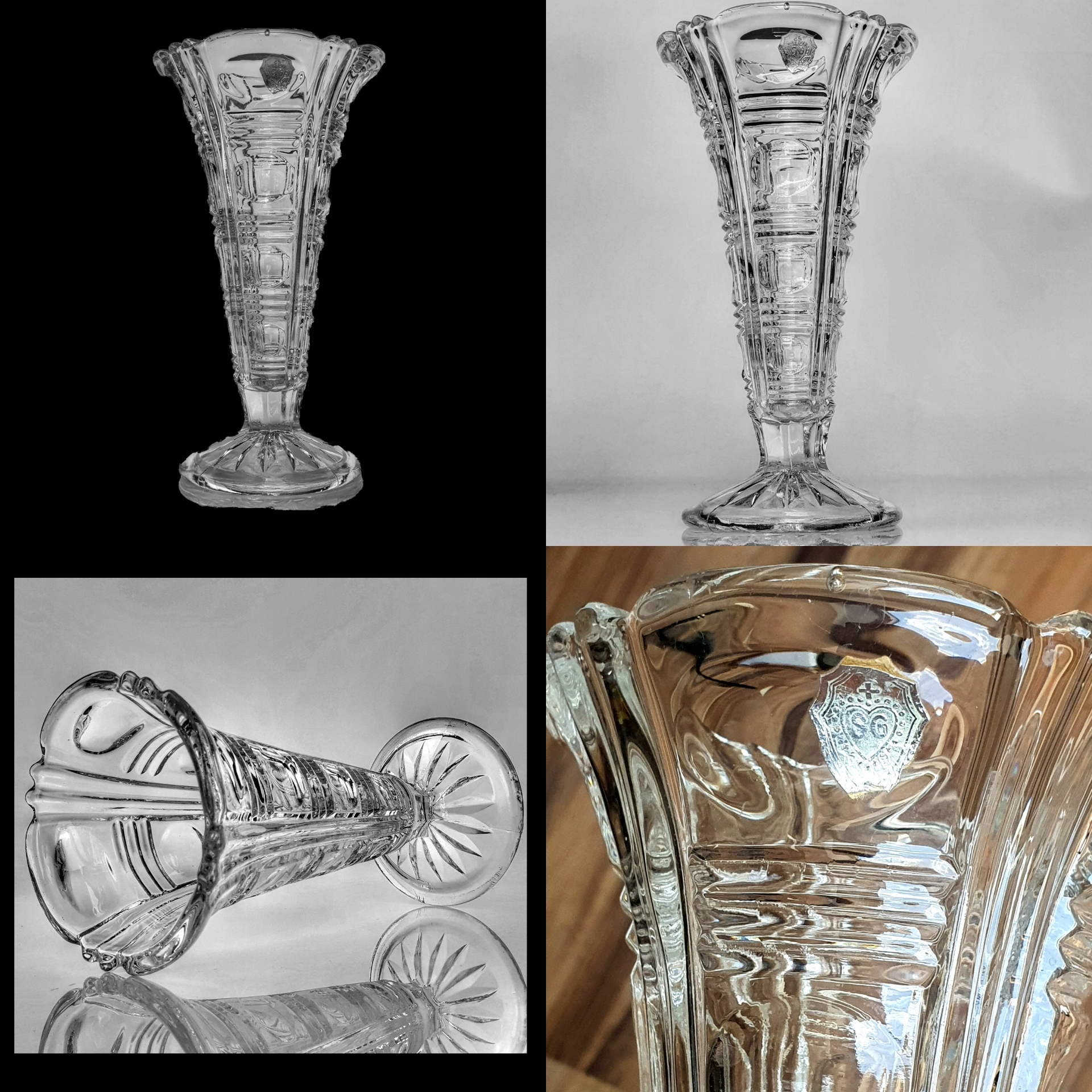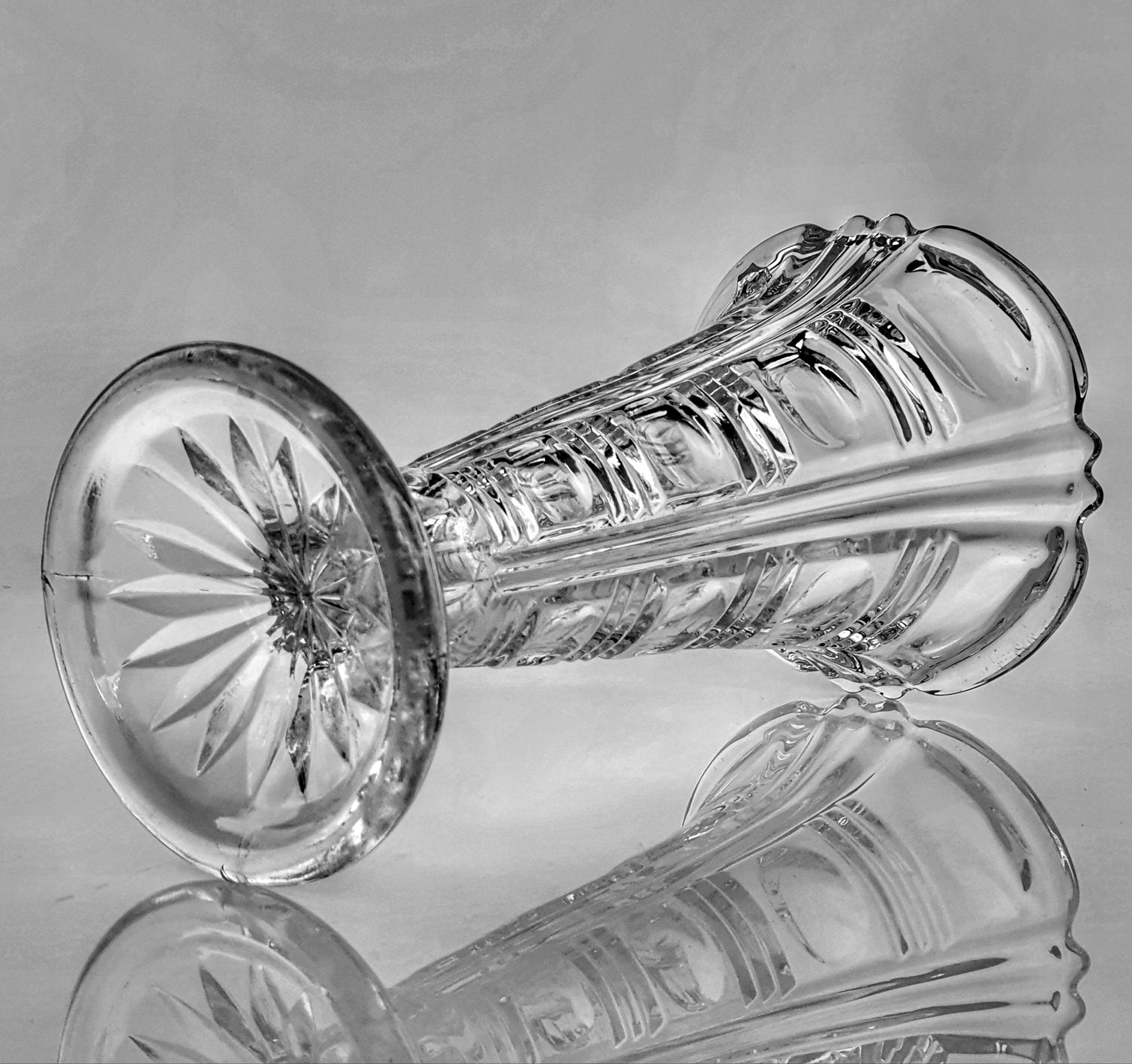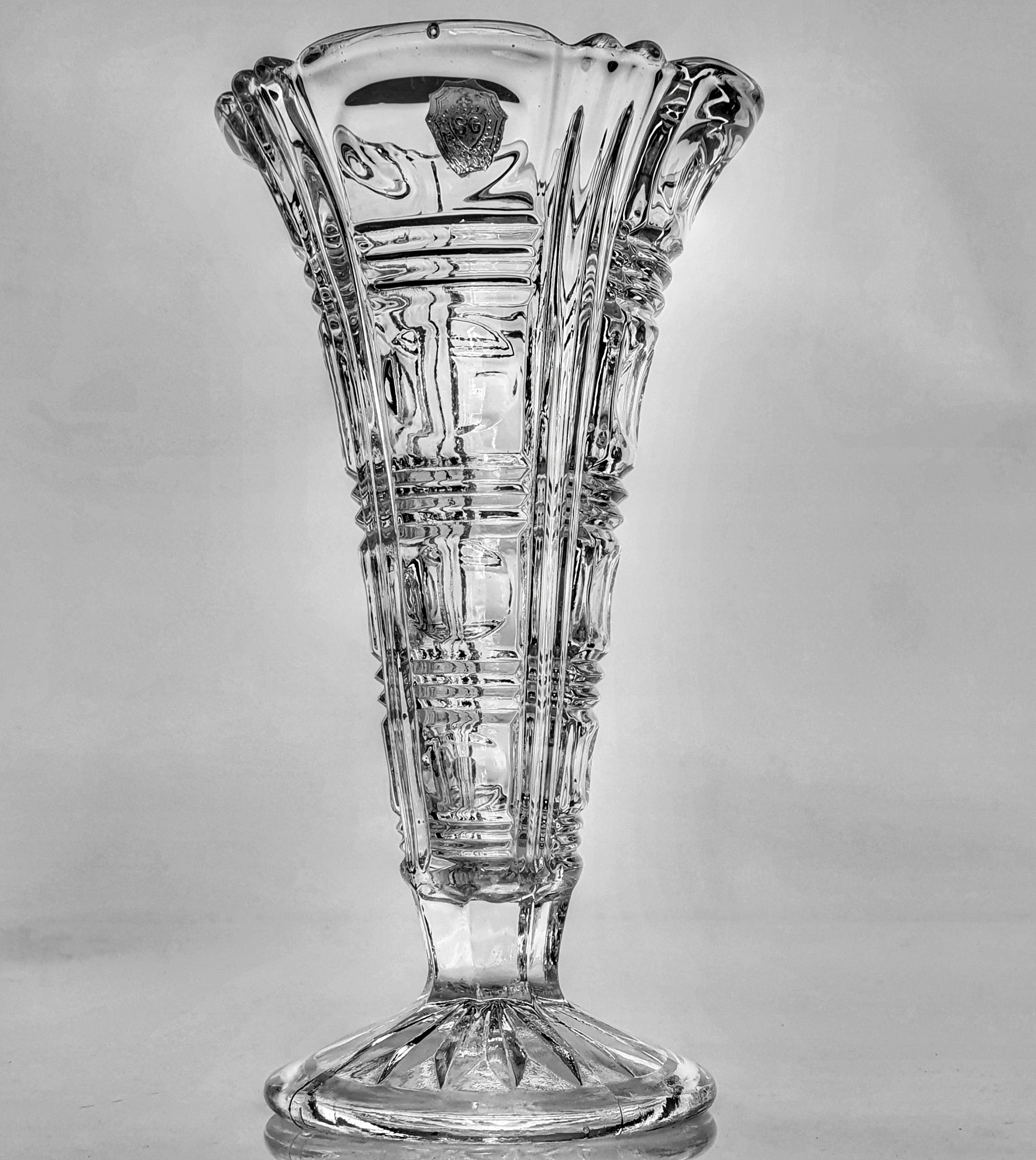 ЧУДА СТАРА ВАЗА З ПРОЗОРНОГО ПРЕСУВАННОГО СКЛА.