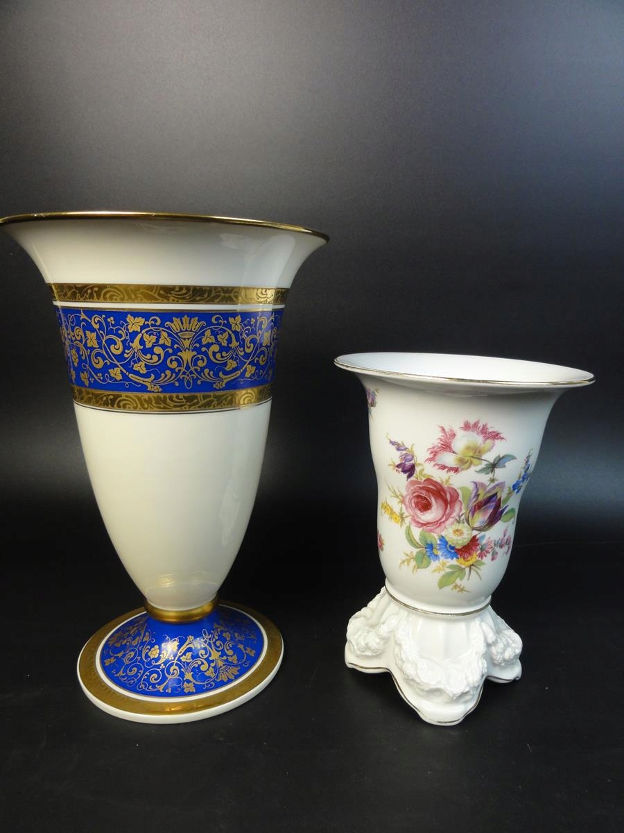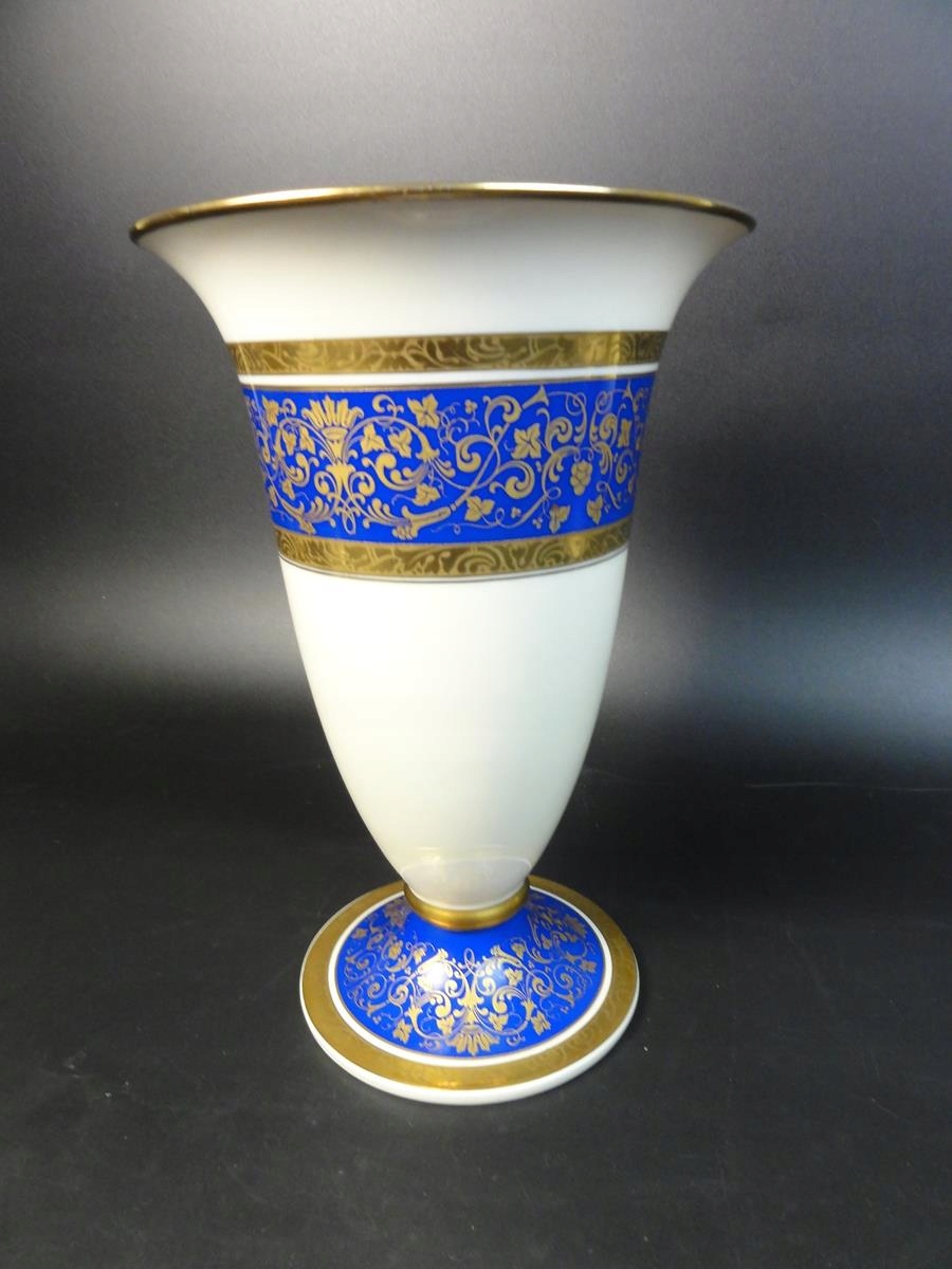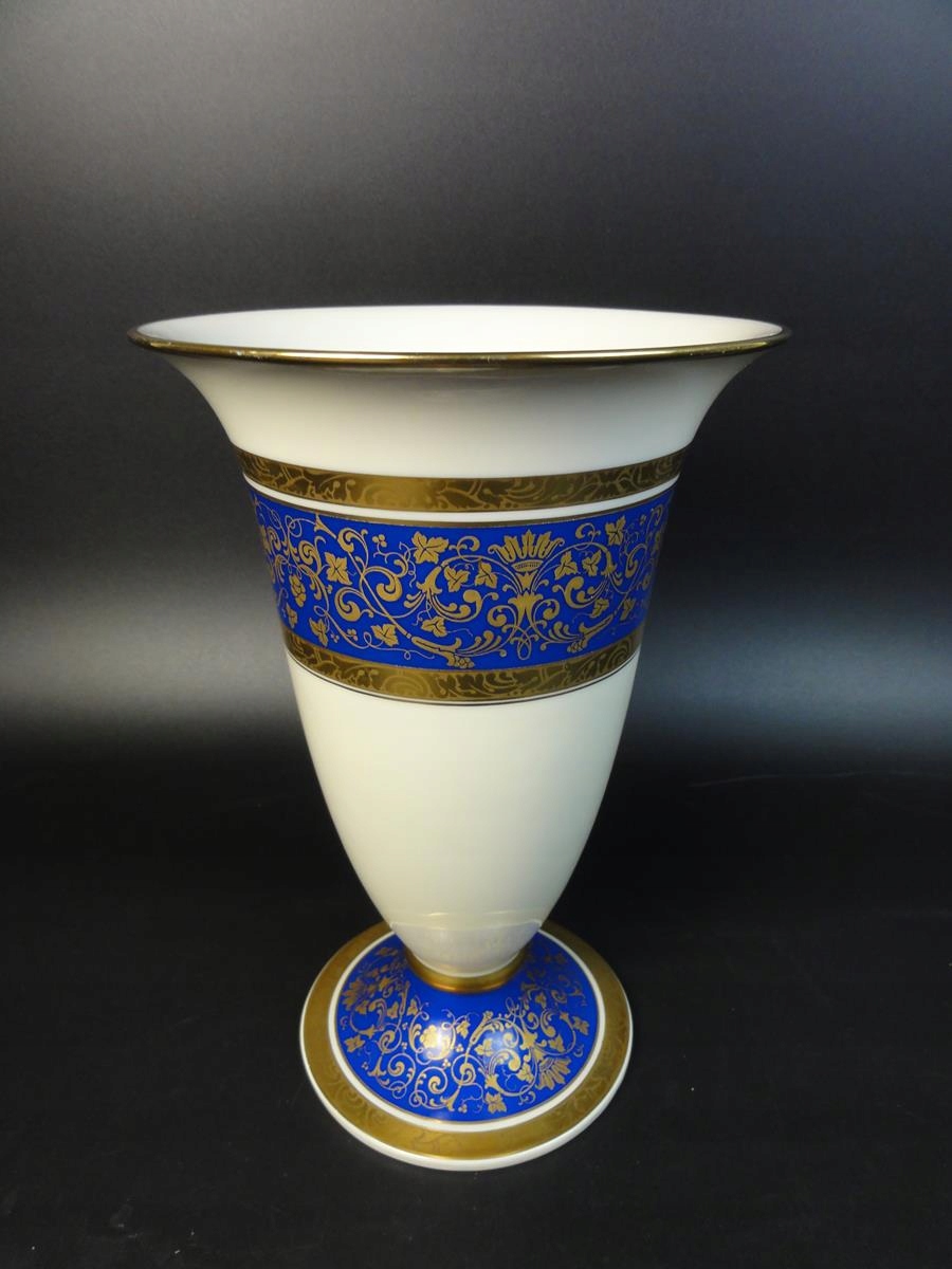 Велика ваза Розенталя. Квітковий декор, золотий і синій.