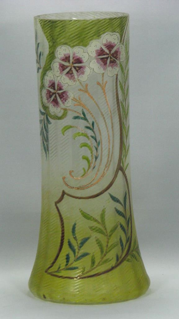 СЕЦЕСІЯ Ваза З ТОНКОГО СКЛА - РОЗПИСАНІ КВІТИ