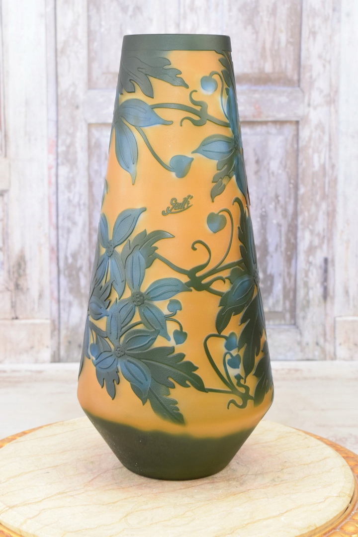Ми запрошуємо вас відкрити унікальну вазу Emile Galle - справжню ікону мистецтва. Виготовлена з високоякісного товстого скла, ця ваза випромінює елегантність і вишуканість, перед якими важко встояти.