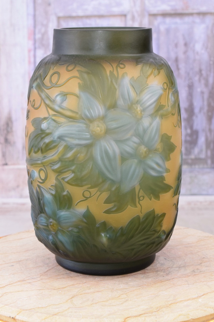 Ми запрошуємо вас відкрити унікальну вазу Emile Galle - справжню ікону мистецтва. Виготовлена з високоякісного товстого скла, ця ваза випромінює елегантність і вишуканість, перед якими важко встояти.