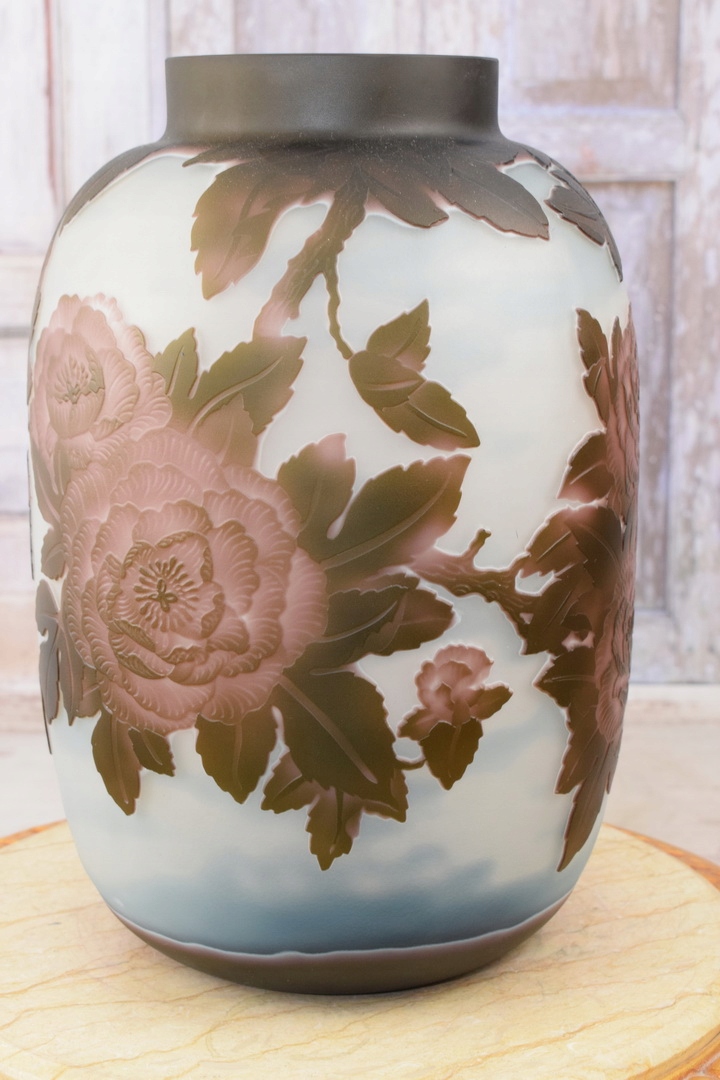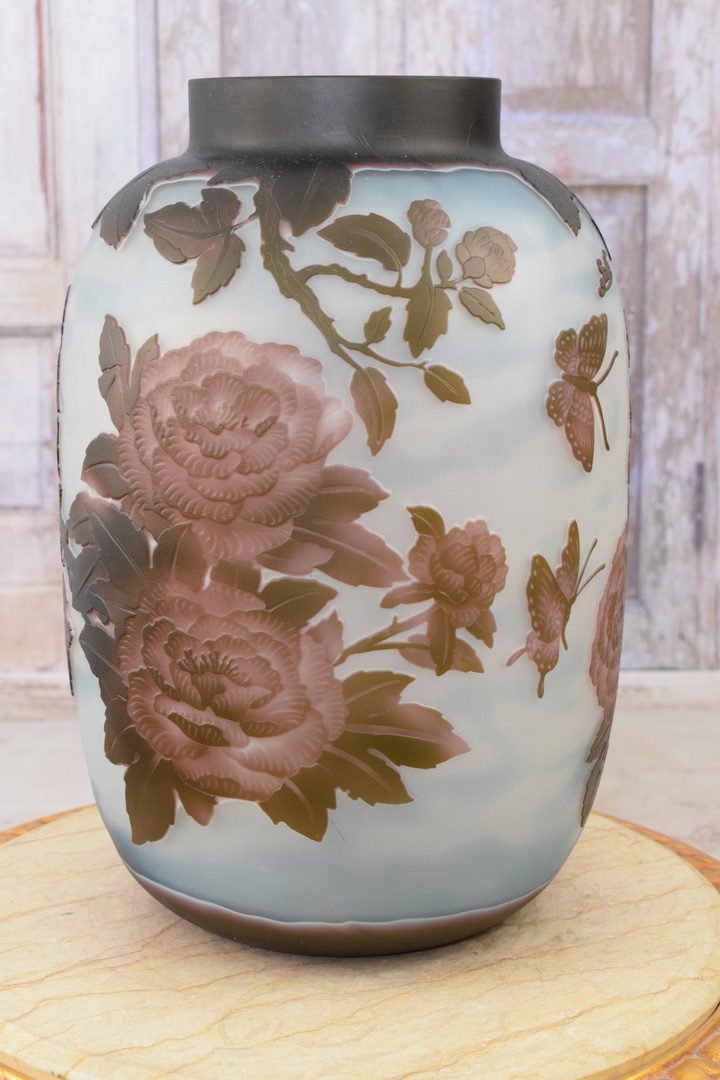 Ми запрошуємо вас відкрити унікальну вазу Emile Galle - справжню ікону мистецтва. Виготовлена з високоякісного товстого скла, ця ваза випромінює елегантність і вишуканість, перед якими важко встояти.