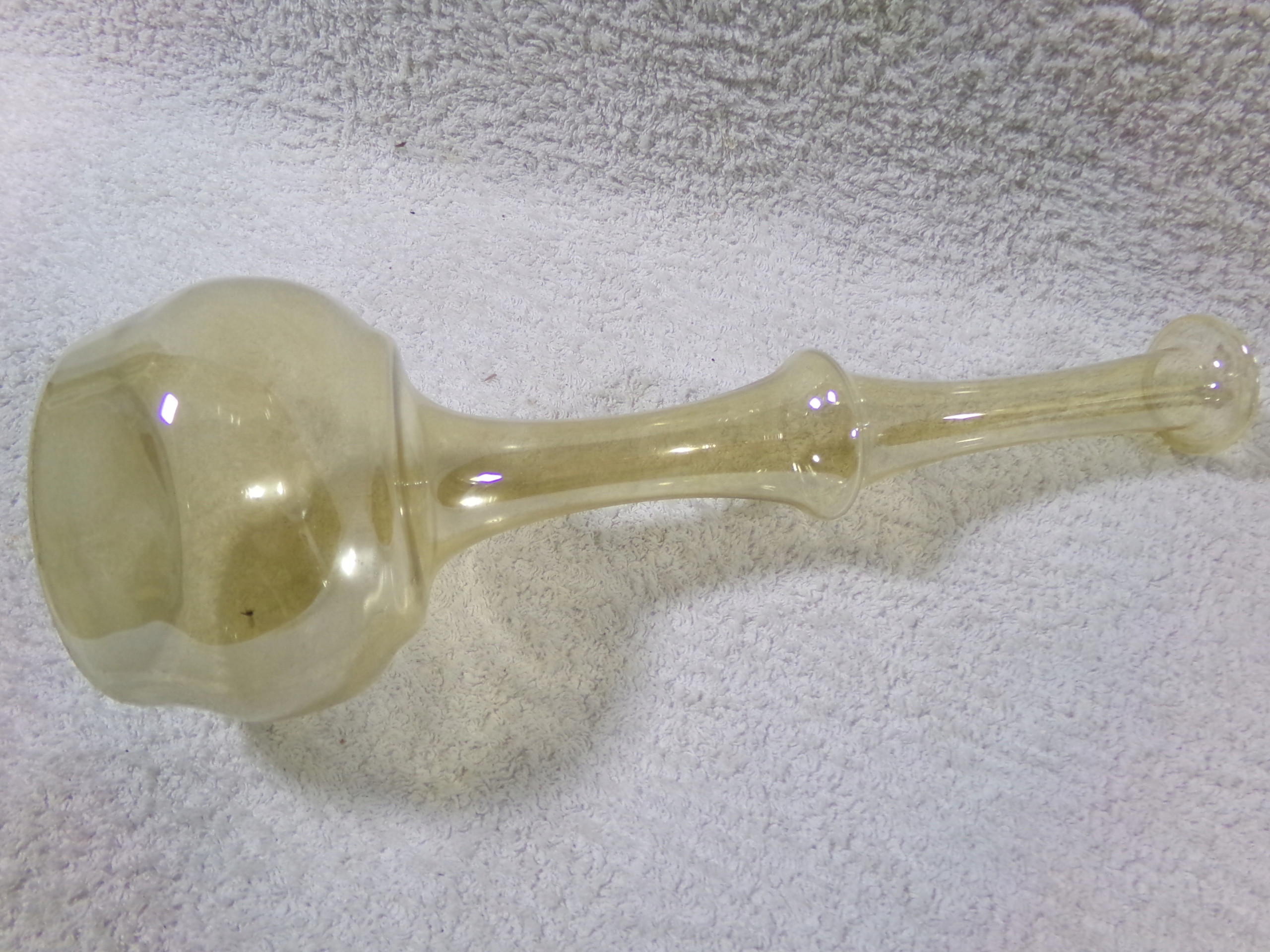 красива скляна ваза, виготовлена з висотою 29,5 см, середнього діаметра 4 см, діаметром живота 9,5 см, вагою 0,12 кг. Дуже хороший стан збережений, без пошкоджень.