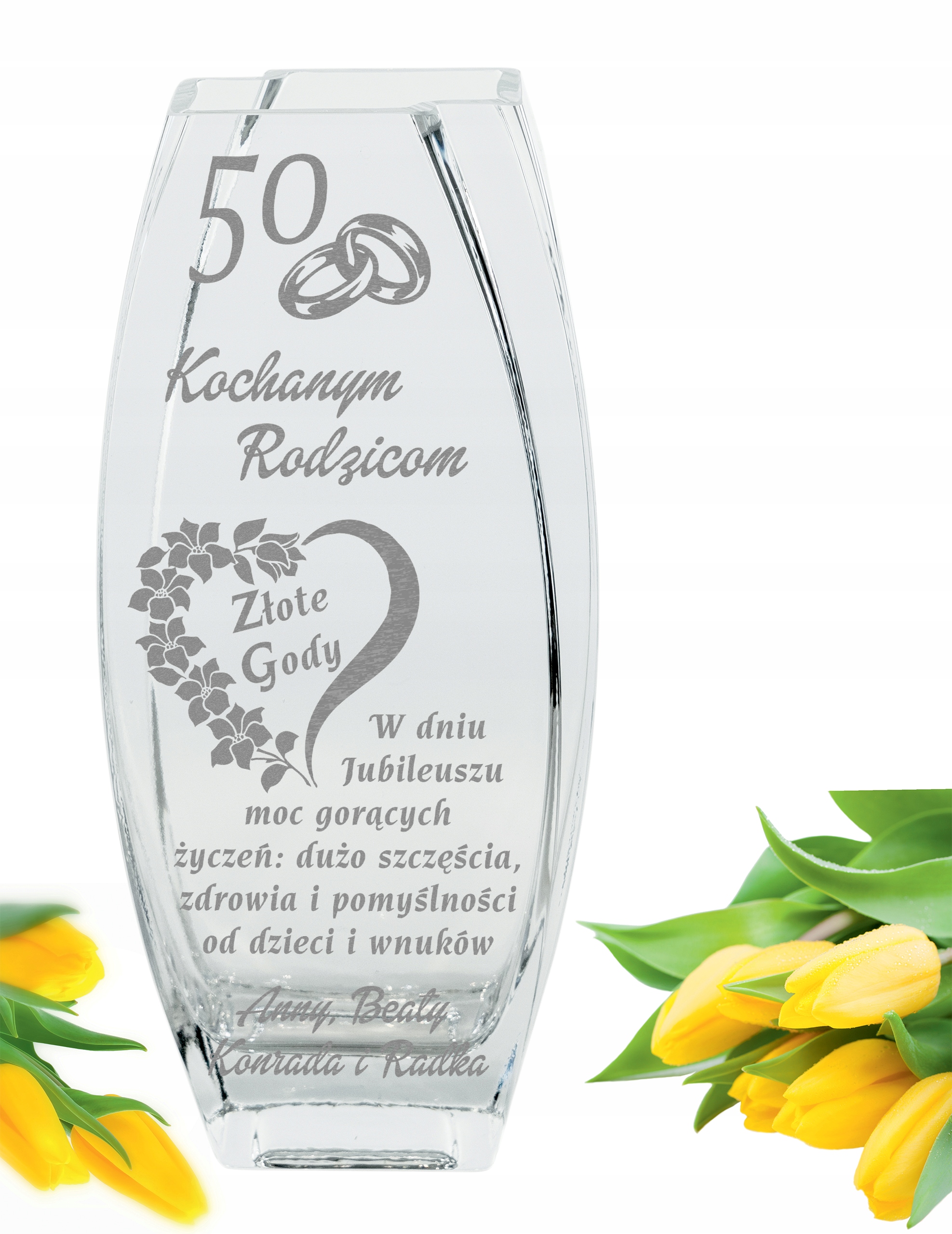 Ваза з ГРАВІЮВАННЯМ 32см ДЕНЬ НАРОДЖЕННЯ ЮВІЛЕЙ