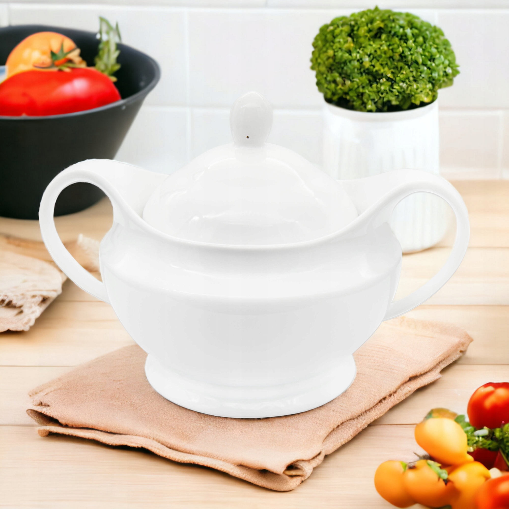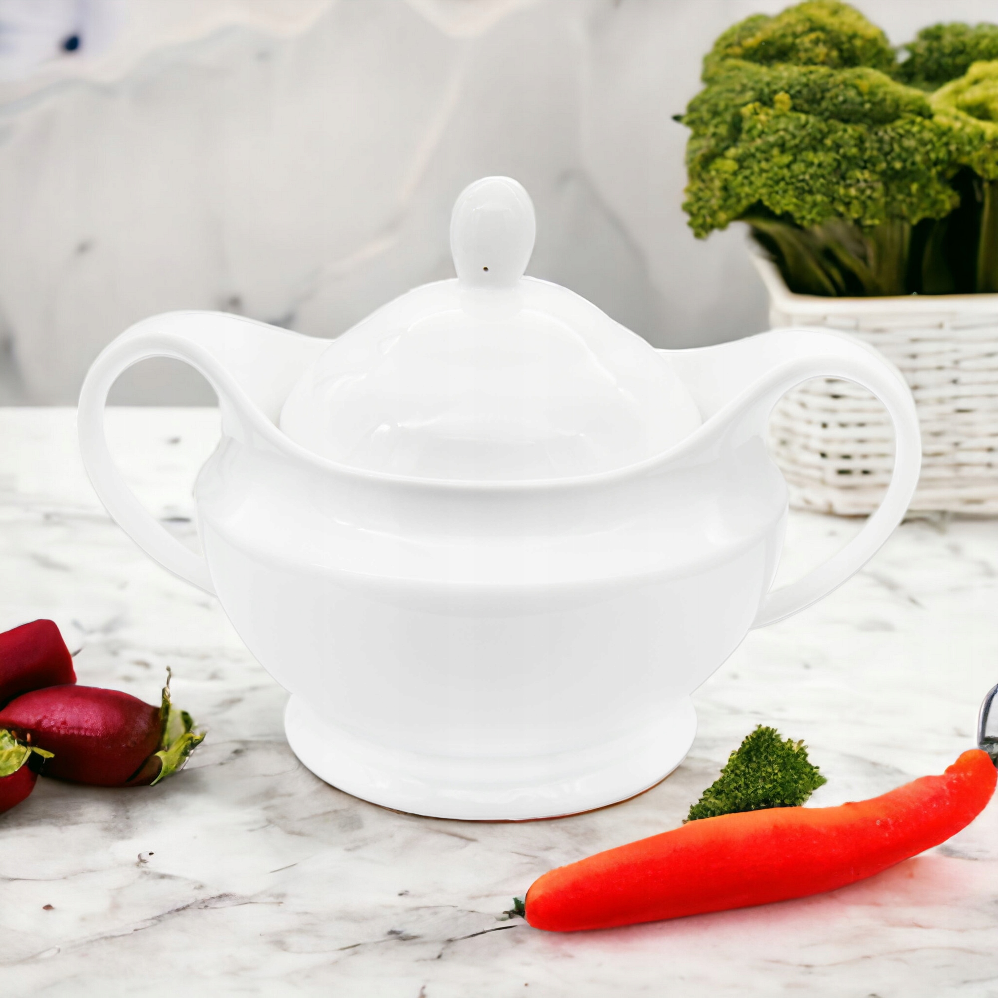 Виготовлений з високоякісної кераміки для різноманітних супів і соусів, він є продуктом, необхідним у кожному домі. Оснащений двома зручними ручками, що полегшує перенесення гарячої їжі, він має практичні особливості. Додаткова кришка входить в комплект - дозволяє гарячим супам довше залишатися теплими, а також забезпечує додатковий захист від комах.