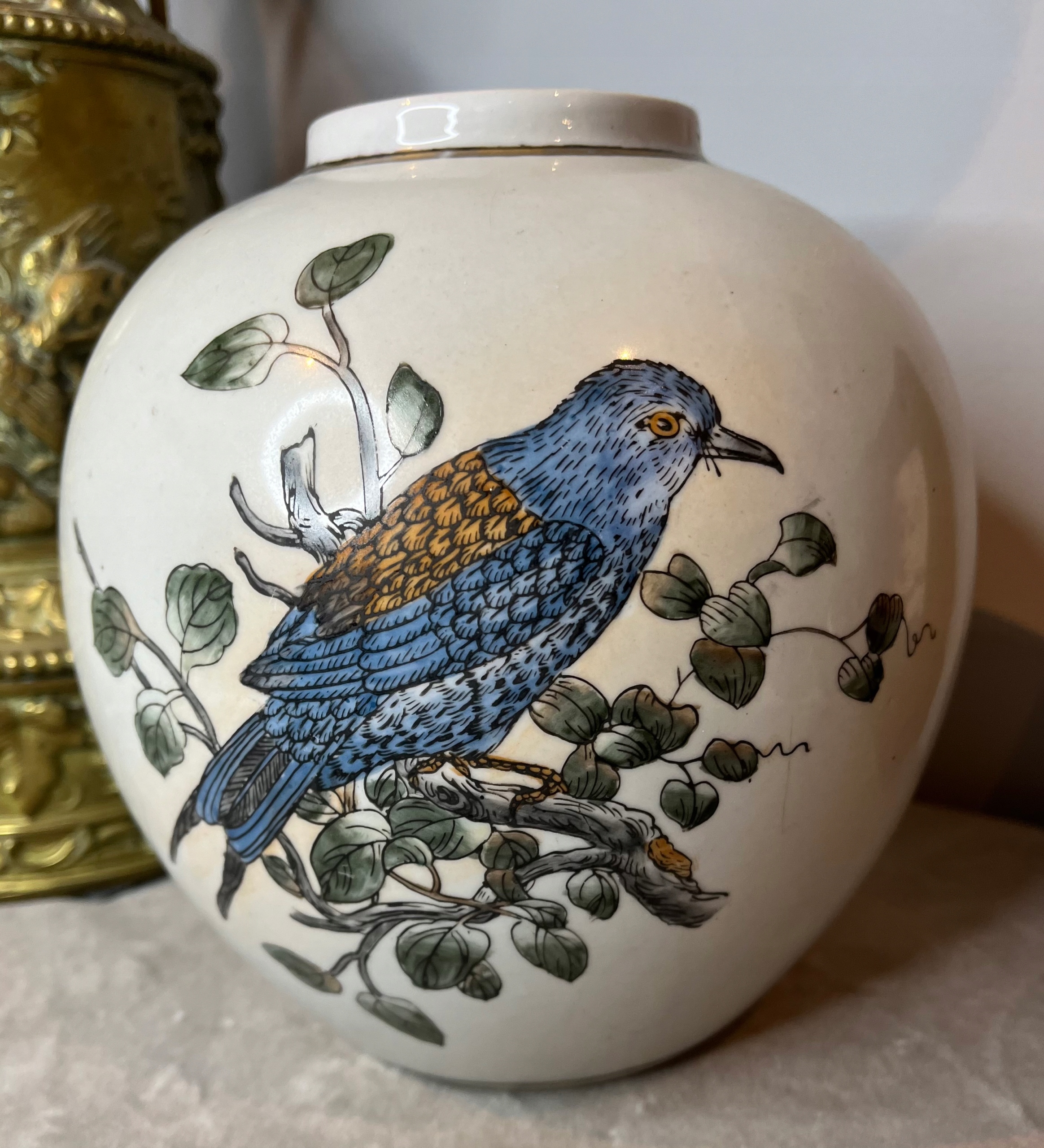 Ваза з пташкою, ручний розпис, підписана, стара
