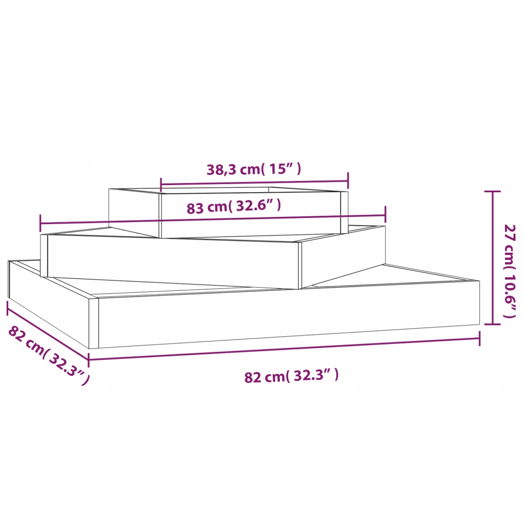 - Розміри: 83 x 83 x 27 см (Ш x Г x В)