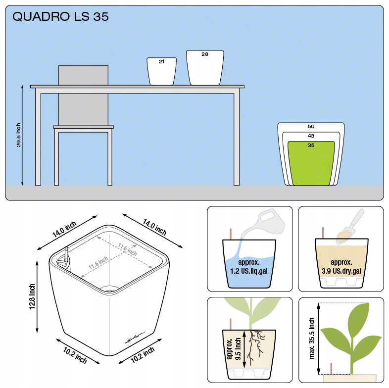 Оплачивая «Вазон Lechuza Quadro LS 35, матовий антрацит», вы можете быть уверены, что данное изделие из каталога «Цветочные горшки» будет доставлено из Польши и проверено на целостность. В цене товара, указанной на сайте, учтена доставка из Польши. Внимание!!! Товары для Евросоюза, согласно законодательству стран Евросоюза, могут отличаться упаковкой или наполнением.