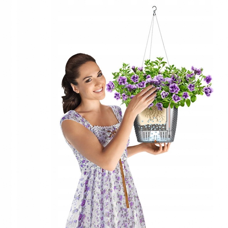 NIDO COTTAGE ідеально підходить для посадки квітучих сезонних рослин. Завдяки змінній внутрішній вставці ви можете легко замінити рослину або зимувати всередині. Набір для поливу означає, що рослина не потребує частого поливу, який раніше ускладнював догляд за ампельними рослинами.