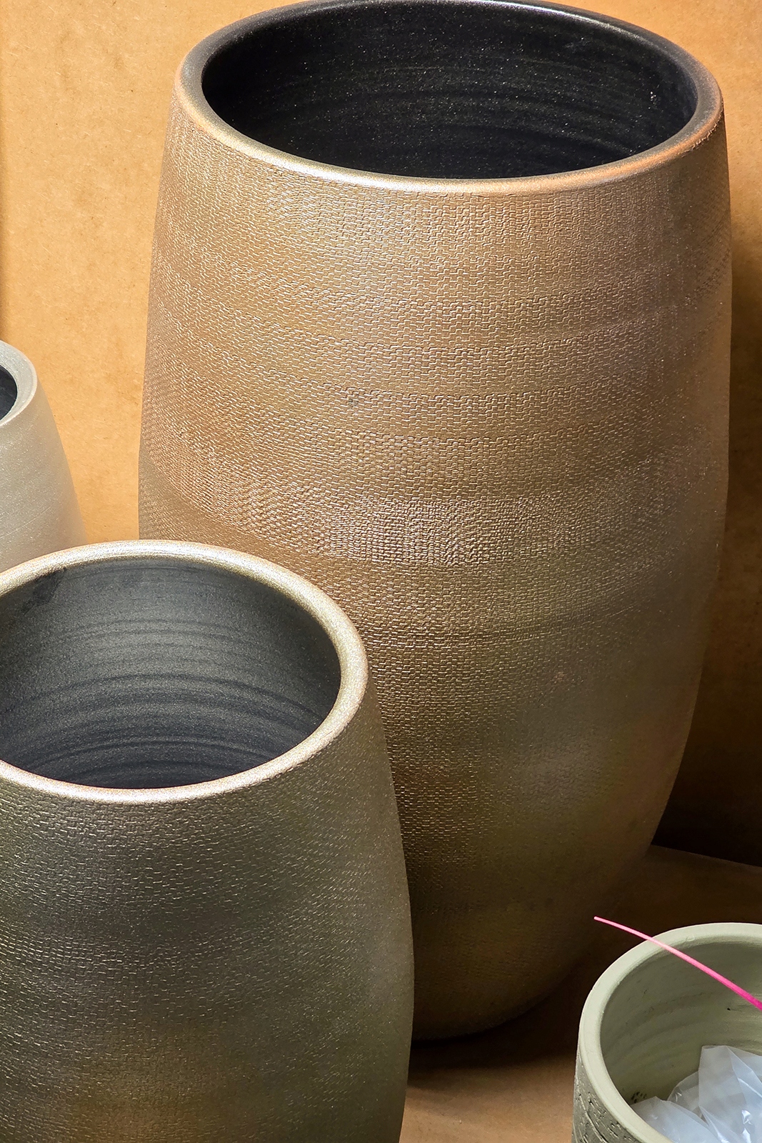 Виготовлена з високоякісної кераміки, ваза захоплює своєю текстурою. Делікатні регулярні канавки покривають всю поверхню, надаючи їй тонкий, але виразний характер. Темний глибокий відтінок сірого робить вазу надзвичайно універсальною та чудово вписується в різноманітні композиції - від сучасних до класичних.