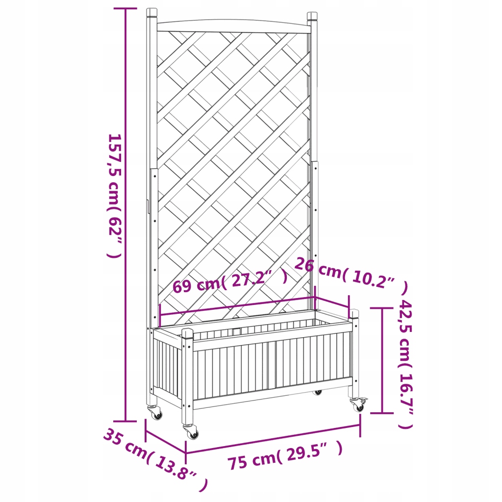 Цей дерев’яний горщик із решіткою та колесами є ідеальним вибором для вирощування в’юнких рослин у вашому саду, на терасі та у внутрішньому дворику.