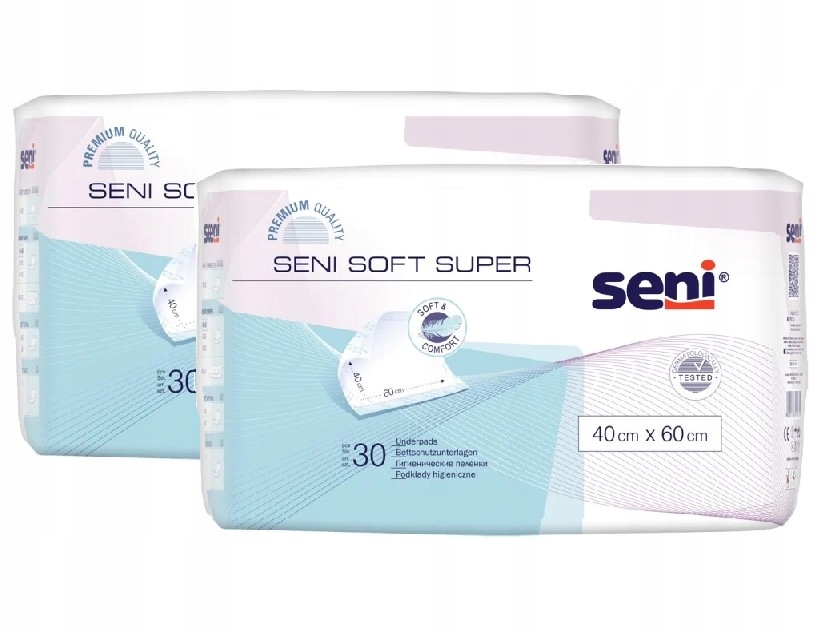 В набір входить 2 упаковки гігієнічних прокладок Seni Soft Super 40x60 см, упакованих по 30 шт. p>