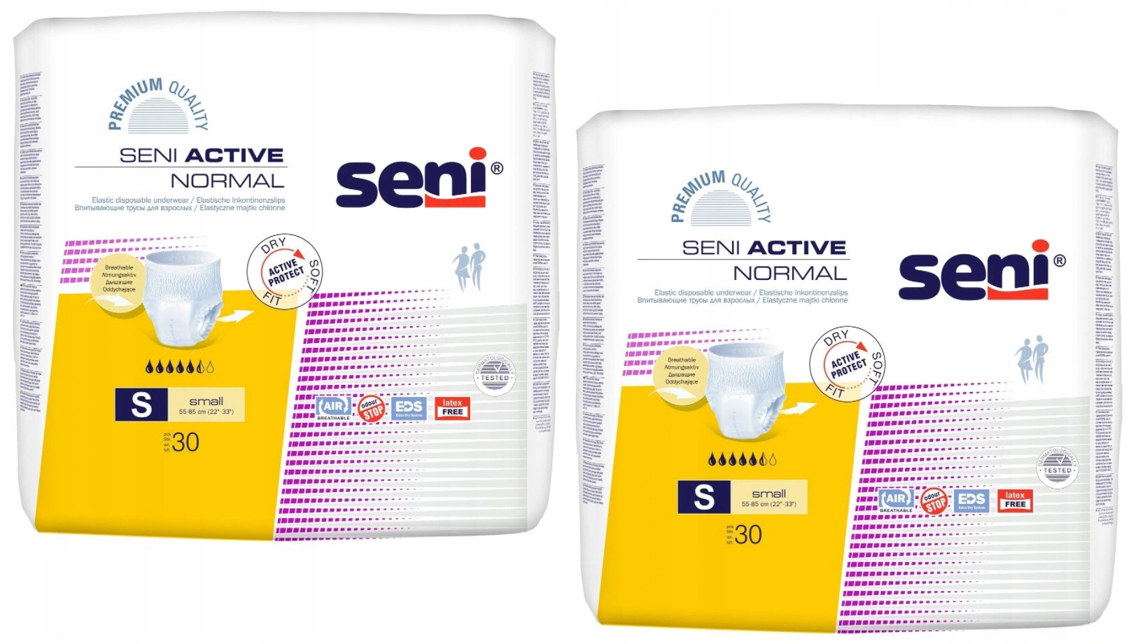 У набір входять 2 упаковки вбираючих трусиків Seni Active Normal Small по 30 шт.
