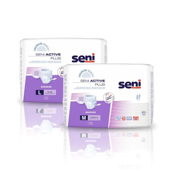 Вбираючі трусики Seni Active Plus — це гнучкі одноразові вироби для дорослих. Призначений в першу чергу для людей, які ведуть активний спосіб життя та для учасників занять з фізичної реабілітації.