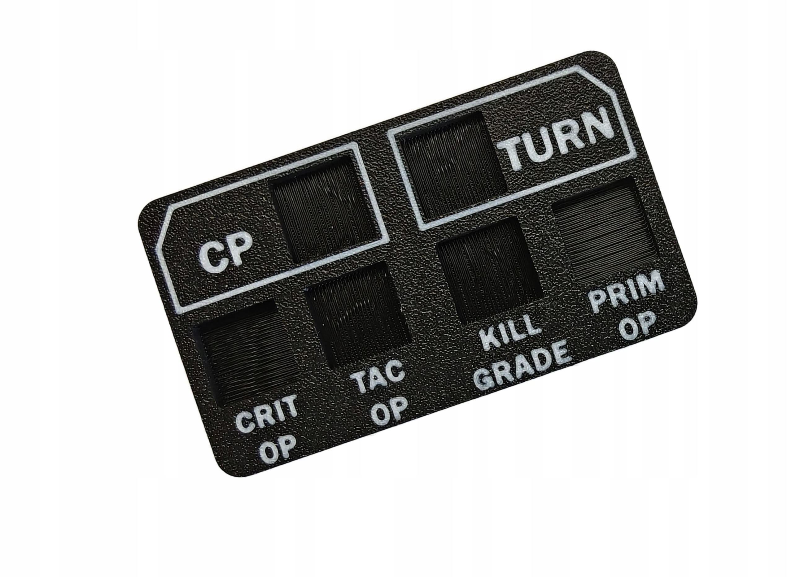 Kill Team Tracker - важливий аксесуар для кожного фаната команди Kill, який допоможе вам зберегти порядок та повний контроль під час ігор. Цей практичний та компактний трекер був розроблений для сприяння відстеженню балів перемоги, командних очок та поточного раунду, що дозволяє зосередитись на стратегії та геймплеї.