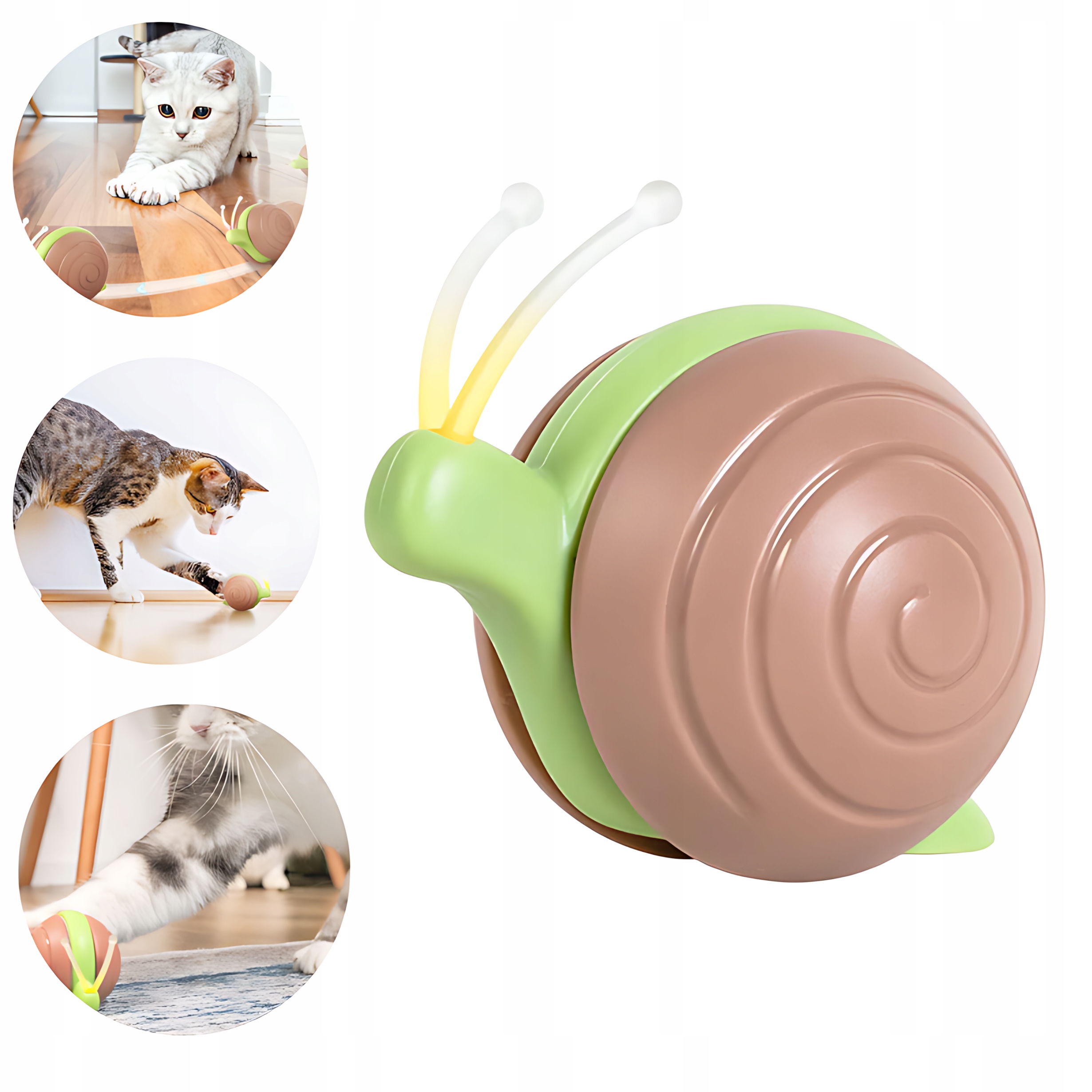 При проектуванні бадьорих злих іграшок равлики, безпека та комфорт тварин були зосереджені. Корпус виготовлений, серед інших, з м'якого та м'якого матеріалу з ПВХ для котячих лап, який досить міцний, щоб протистояти взаємодії з найсміливішими котами. Іграшка плавно рухається на різних поверхнях, таких як мармур, дерево і навіть килими. Крім того, він майстерно уникає перешкод і знаходить альтернативні шляхи, а його швидкий темп та різноманітність рухів роблять погоню завжди захоплюючою та непередбачуваною.