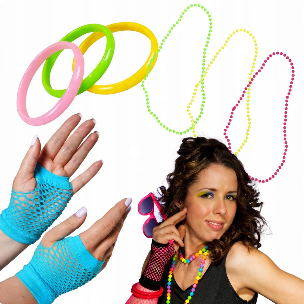 Вбрання 80-х неон KICZ PARTY PRL рукавички намистини браслети 8 шт