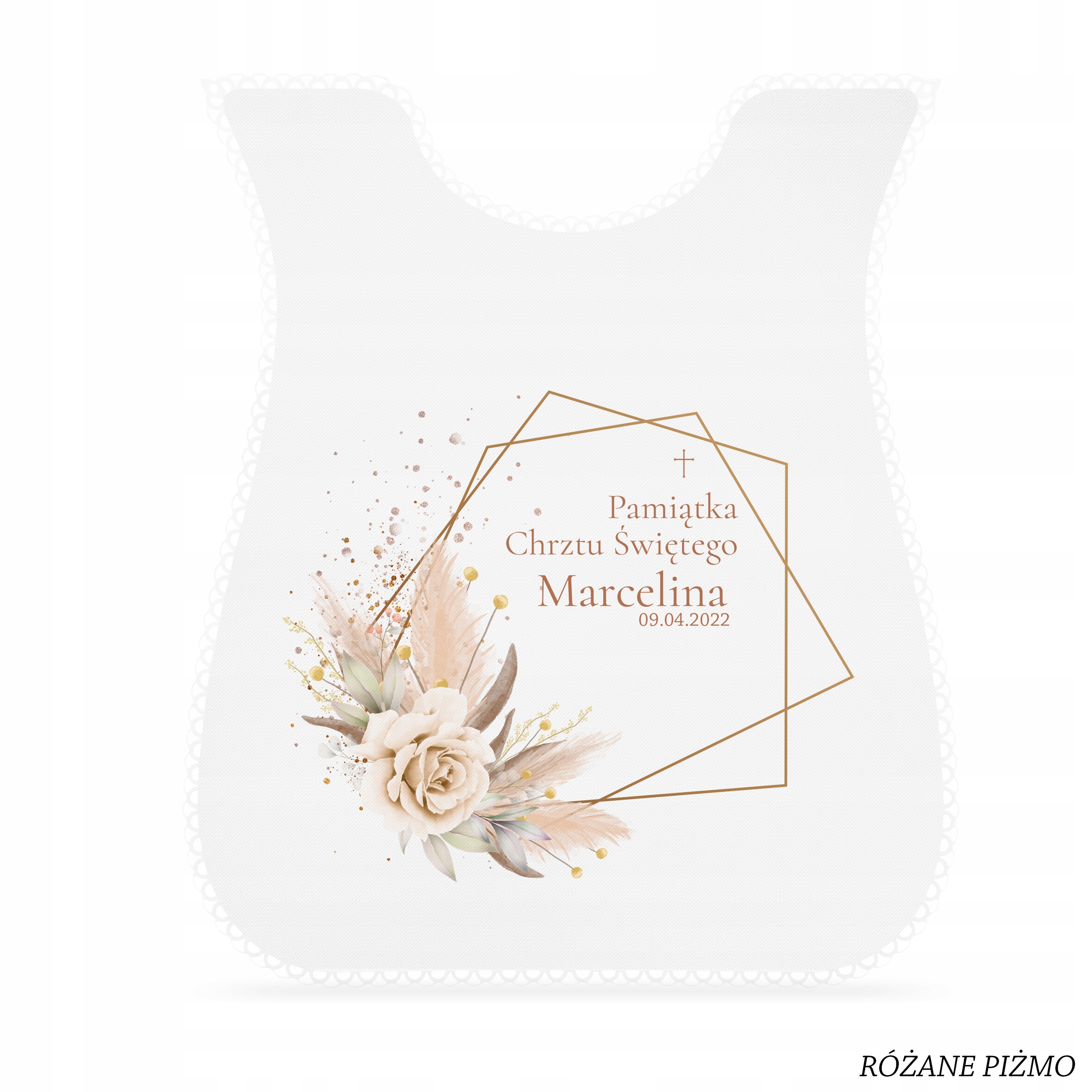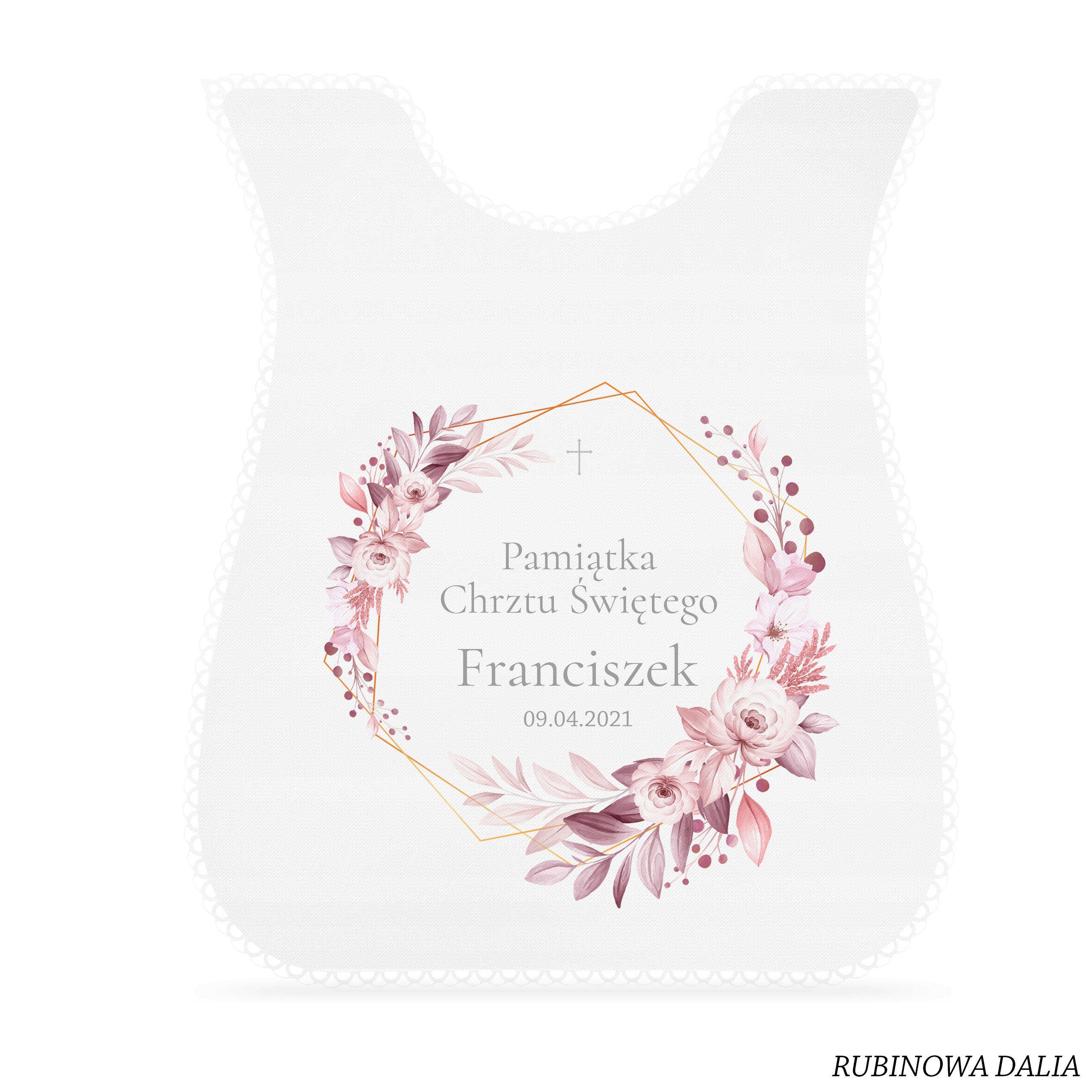 - ✅ одяг міститьім'я дитини та дату хрещення.