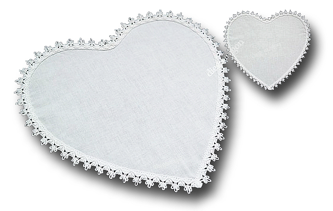 Хлат у формі серця, розміри: приблизно 30см х 30см, виготовлено з білого бавовняного полотна, оздоблено білою декоративною стрічкою.