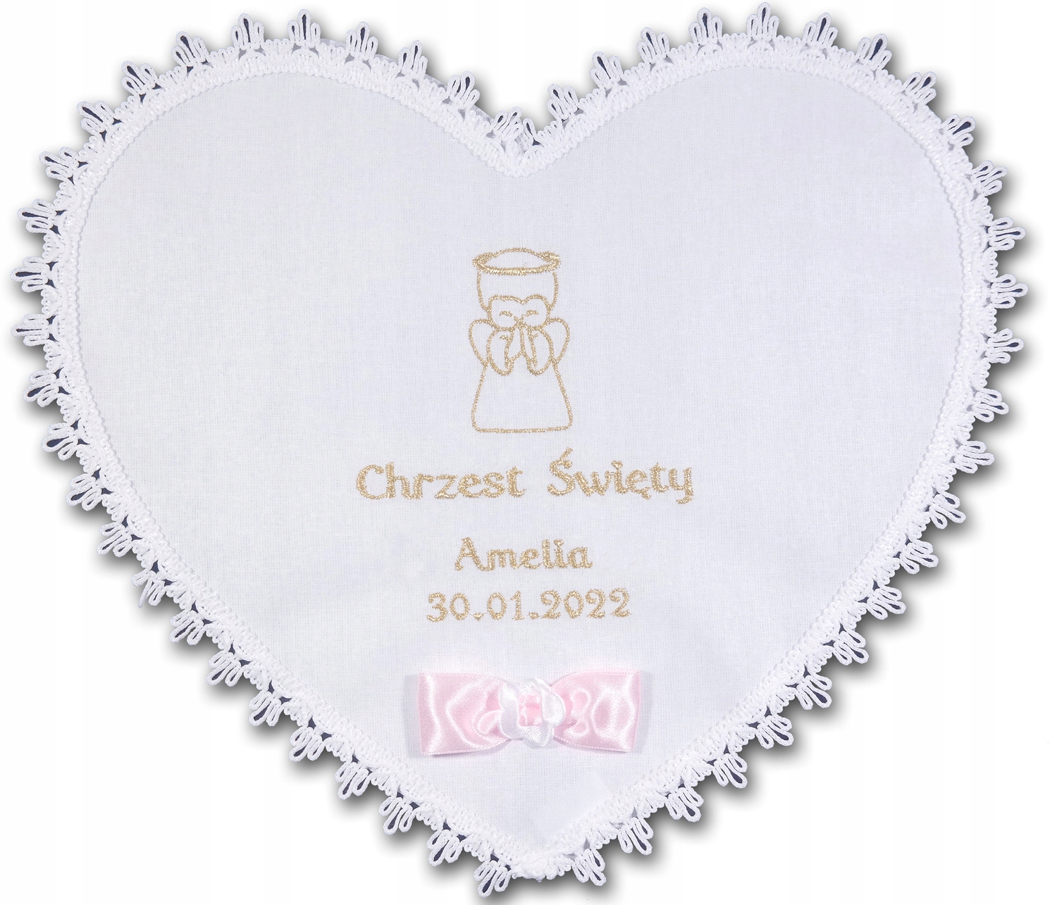 Вбрання серце для хрещення, вишивка ім'я Дата полотно