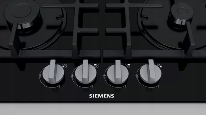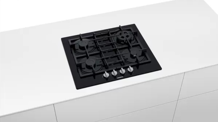 Газова варильна поверхня Siemens iQ300 EN6B6HB90, шириною 60 см, з управлінням на передній панелі, оснащена конфоркою вок потужністю 3,3 кВт. Виготовлений із загартованого скла, що робить його особливо стійким до тепла та полегшує очищення.