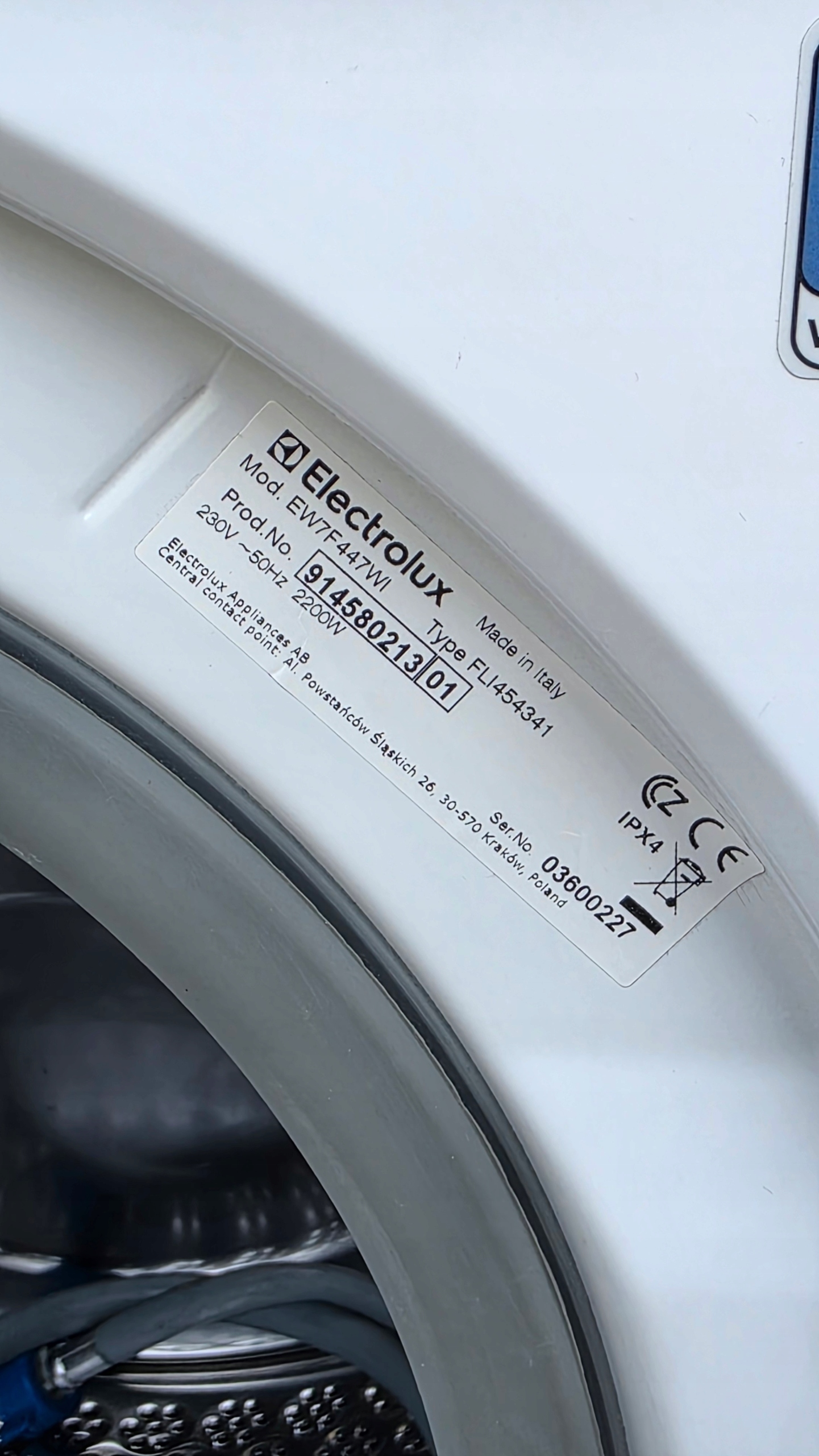 • Виробник, серія та модель: Electrolux Perfectcare 700, EW7F447WI